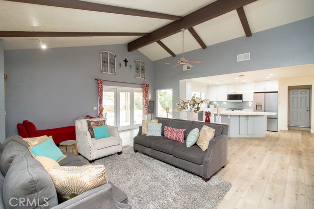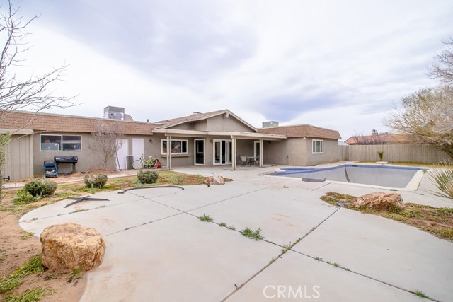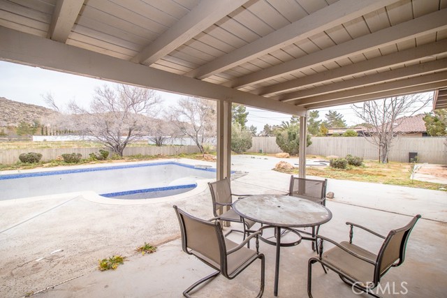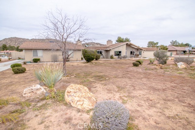 Two Homes on Over One Acre! Welcome to this beautifully maintained dual-residence property offering space and comfort on a 1+ acre lot. Perfect for multi-generational living, rental income, or hosting extended guests, this unique property delivers both functionality and charm. The Main House itself has 3 Bedrooms, 2 Bathrooms, 2-Car Garage, and RV Access. As you enter the main home, you’re greeted by a thoughtful layout with a living room to the left and a formal dining room to the right. The home immediately impresses with vaulted wood-beam ceilings, creating an open and airy feel. Fresh interior paint enhances the bright, inviting atmosphere throughout. The living room and family room share a dual fireplace, perfect for cozy evenings. The remodeled kitchen, completed in 2021, features updated finishes and comes equipped with a stove, microwave, and dishwasher. The air conditioner is approximately six years old, offering peace of mind for year-round comfort. All windows throughout the home have been upgraded to WeatherTech windows. The master bedroom includes a walk-in closet, a private vanity area, a bathroom with an oversized soaking tub and separate shower, and direct backyard access. Upon entering the backyard, you are greeted by an oasis featuring a Pebble Tec pool completed in 2020—ideal for entertaining or relaxing on warm desert days. This property also boasts 14 fruit trees. The property also has a two-car garage and RV access and plug-ins, making it ideal for recreational vehicles. The detached guest house is 900 square feet and offers its own private living space with a fireplace, full kitchen, two bedrooms, and one full bathroom. It also includes its own private backyard access. A stackable washer and dryer are included, adding extra convenience. This space is perfect for extended family, guests, or rental potential. With two homes, expansive land, RV accommodations, and thoughtful upgrades throughout, this property is a rare opportunity offering flexibility, privacy, and desert living at its best. Don’t miss your chance to own this truly versatile estate!
