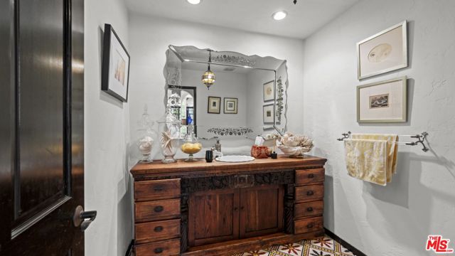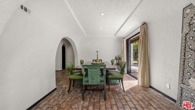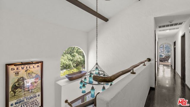 So utterly private, you disappear from the world as you drive up to your sanctuary in this hidden cul-de-sac in Studio City's prestigious Fryman Canyon estates. Behind gates and up a long private driveway, this is modern Spanish architecture with authenticity and restraint. One acre of private hillside grounds: secluded, elevated, and remarkably quiet. Located in one of the city's most sought-after neighborhoods, with some of the best hiking trails right outside your backyard, it blends natural serenity with easy access to Studio City's trendy restaurants, CBS/Warner Bros, Netflix and Universal, and the hip nightlife of Hollywood and the Sunset Strip. Classic Spanish character meets thoughtful updates. Brick detailing, sculptural arches and wood-burning fireplaces provide warmth and permanence, while polished concrete floors and thoughtful updates bring a contemporary edge. A dramatic two-story foyer sets a confident architectural tone from the moment you enter. The formal dining room overlooks the sparkling pool and lush layered landscaping. The kitchen anchors the home with direct access to the Great Room and outdoor entertaining areas. A nearby office or flex space offers versatility without interrupting flow. Upstairs, the bedrooms feel light-filled and elevated, with treetop views and a sense of retreat. The primary suite is generous and private, featuring a spa-like bath with steam shower, dual vanities and substantial closet space. An en suite guest bedroom offers privacy, while two additional bedrooms share a remodeled Jack-and-Jill bath. The upstairs family room is magical soaring ceilings and expansive windows surround you with treetop views and the quiet of the hillside. You are a creative artist and you immediately respond to how different this house is from anything else. The upstairs family room is the architectural standout with soaring ceilings, expansive windows and direct outdoor access framing canyon views. It's a rare volume suited equally for creative work, wellness, entertaining or quiet reflection. A beautiful retreat with scale, character and proximity. This is a rare opportunity to own a private, exceptional home in Fryman Canyon Estates.