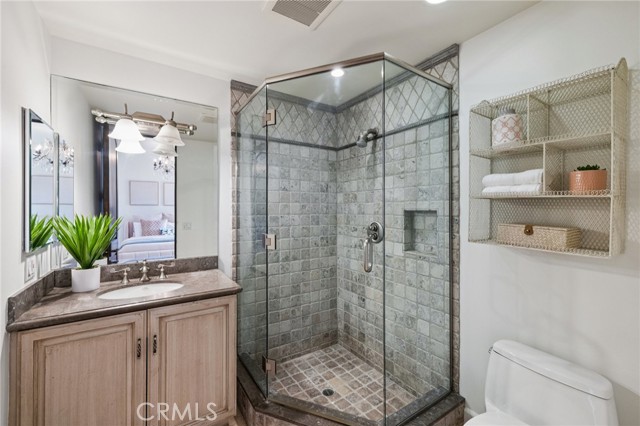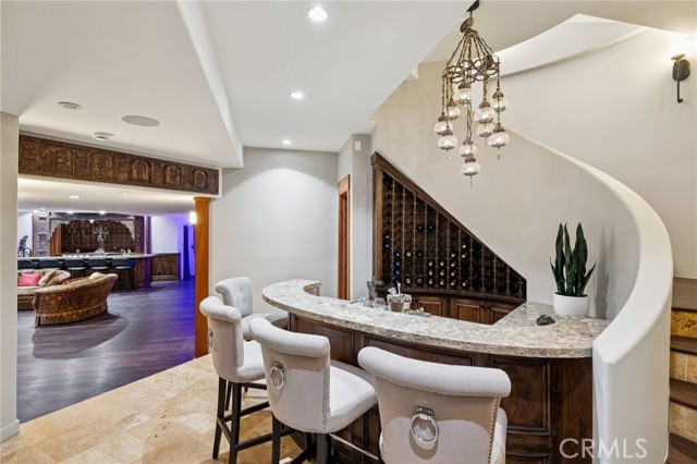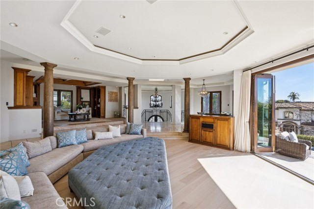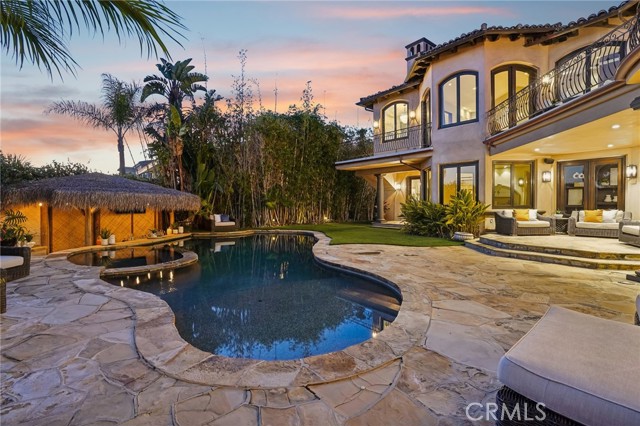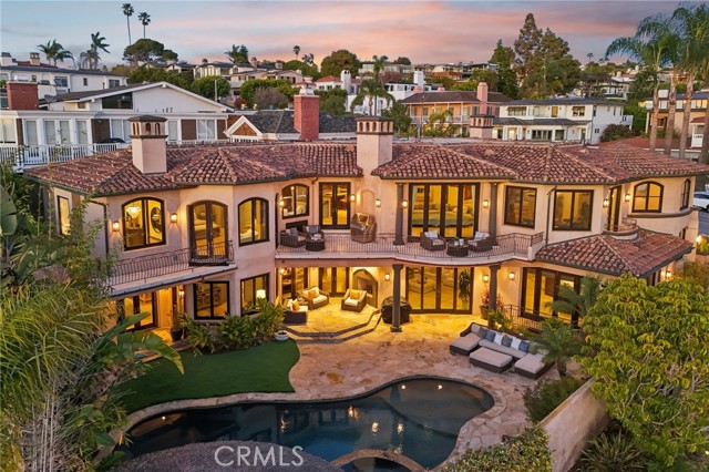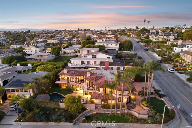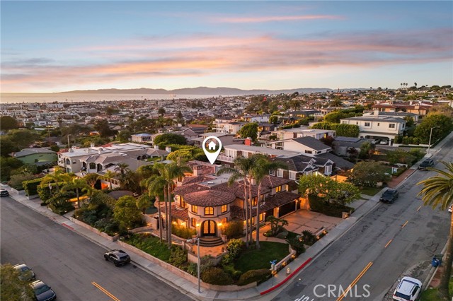 High above the street in the iconic Hill Section of Manhattan Beach, this Southwest-facing corner estate feels like its own private resort—where ocean breezes drift in, sunlight pours through soaring ceilings, and every level delivers a new experience. In a city where space, privacy, and ocean vistas are hard to come by, the Hill Section is one of the few neighborhoods that offers all three—along with a short stroll to the beach, easy access to downtown, and walking distance to award-winning Robinson Elementary. Step inside on the main entry level and the drama begins: dual curved staircases, statement chandeliers, and fresh white oak floors that instantly lighten the mood. Five bedrooms (four ensuite) are thoughtfully positioned alongside a spacious family room and bonus flex space—ideal for homework marathons, movie nights, or a quiet work-from-home escape. Slide outside and you’re transported to a tropical oasis: pool, spa, swim-up bar, tiki hut with grass roof, outdoor fireplace, turf lawn, and bamboo-lined privacy that makes every day feel like a five-star getaway. Upstairs is where life unfolds in grand fashion. The living room opens to a balcony overlooking the lush backyard, while the gourmet kitchen—complete with Sub-Zero refrigeration, Dacor 6-burner range, double warming drawers, two Miele dishwashers, and an expansive granite island—anchors the home with effortless entertaining power. Double butler’s pantries and a built-in work area keep everything running smoothly. A warm library/study with fireplace invites slower moments, while the primary suite is a retreat unto itself: balcony access, dual-entry walk-in closet, soaking tub, dual vanities, and a spa-style shower designed to start and end your days right. Then there’s the level no one sees coming. Take the elevator down and you’ll find a moody, club-inspired escape reminiscent of the Foundation Room at House of Blues—ornate carved doors, ambient lighting, full bar, VIP lounge, theater room, and a vibe that says the night is just getting started. With over 9,000 square feet, six bedrooms, seven baths, multiple living areas, three-car garage, and seamless indoor-outdoor flow, this estate fully captures what makes the Hill Section so sought-after: room to spread out, privacy to unwind, and views that remind you why Manhattan Beach living is in a class of its own. It may feel like a faraway escape. Spoiler alert: it’s right here.
