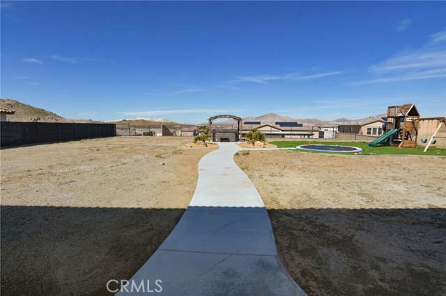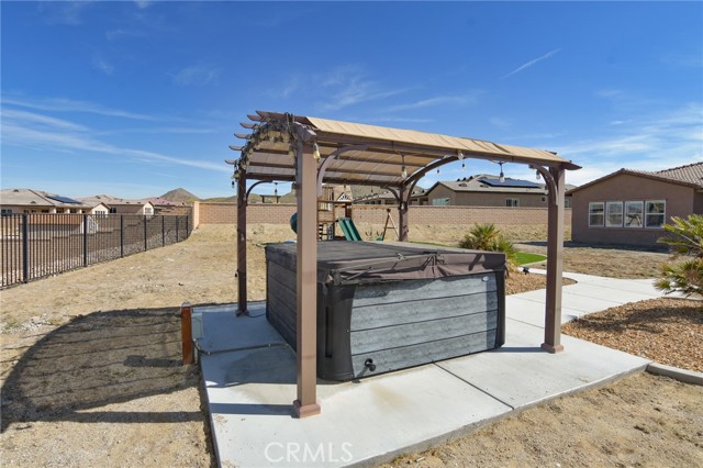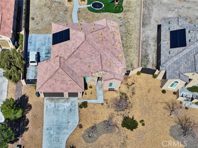 Single-story 2020 home with OWNED solar, RV parking, and mountain views in gated Vista del Sol Estates, 2,920 sq ft, 4 bedrooms, split floor plan, chef-style kitchen with oversized island, and only $50/month HOA. Located in one of Apple Valley’s most desirable gated communities, this nearly new 4 bedroom, 3 bathroom home offers modern construction with the advantage of being fully finished without the added cost of new build upgrades. Built in 2020 with solar installed at construction, all major systems including heating and air are just five years old, delivering energy efficiency and long-term value. Inside, high ceilings and an open layout create a bright and spacious feel. The split floor plan places the primary suite privately away from the secondary bedrooms for added comfort and separation. The chef-style kitchen features quartz countertops, a walk-in pantry, and a large oversized island that anchors the living space, ideal for gatherings and everyday living. Step outside to a fully landscaped backyard with a 576 sq ft patio, breathtaking mountain views, and stunning desert sunsets. The generous 21,320 sq ft lot also includes RV parking, a 3-car garage, and an extra-wide driveway for additional vehicles. Unlike nearby brand-new homes, this property already includes: • Owned solar system • Completed landscaping • Installed window coverings • RV parking ready • No construction delays . No out-of-pocket upgrade costs Additional highlights: • Gated community • Private water, public sewer • Low $50/month HOA If you’ve been considering new construction in Vista del Sol Estates, this home offers the rare advantage of being nearly new but fully complete and move-in ready. Schedule your showing and experience the difference.