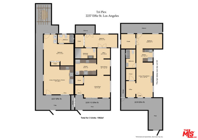 Charming Hillside Triplex, 1,902 square feet across 3 units, conveniently located in the heart of Silver Lake. This special property is perched along a coveted Silver Lake hillside. A unique character-rich triplex that offers a rare balance of privacy, light, and layered canyon views. A wonderful opportunity to live in the vacant unit and collect rents from the other two units. 2237 Effie is framed by mature eucalyptus, cedar, and Ficus trees, the property unfolds like a secluded retreat, quietly removed, yet moments from the cafes, boutiques, and live music venues that define Eastside living. Discover the winding paths around the lake in the morning and then grab a coffee at Andante. The best of Silver Lake and Echo Park surround you. Thoughtfully oriented to embrace California's indoor-outdoor lifestyle, private balconies and patios extend each residence into the landscape. Located under a mile from the Silver Lake Reservoir, and approximately one mile from Echo Park Lake, the setting places you at the center of two of Los Angeles' most beloved outdoor anchors while still being walking distance to the lively restaurants, cafes, and shops along Sunset Boulevard. One 1-bedroom, 1-bath residence is delivered vacant. This sun-filled unit features vaulted ceilings, skylights, in-unit laundry, dual walk-in closets, and a walk-in shower, creating a bright, comfortable, and refined living experience. The top unit offers an inviting design-forward aesthetic with an updated kitchen, concrete floors, dual skylights, in-unit laundry, and back patio access to a pergola-covered view deck. This unit is currently rented at $3,100. All 3 units include assigned off-street parking, abundant natural light, and views from every room. Ideal for an owner-user seeking both sanctuary and income potential: live in one residence while generating rental revenue from the 2 others. Also, investors will have ease in renting this prime location. Additionally, there's room to build an ADU, buyer to verify square footage, permits and lot size. A rare opportunity to own a tranquil hillside compound in one of Los Angeles' most culturally vibrant neighborhoods.