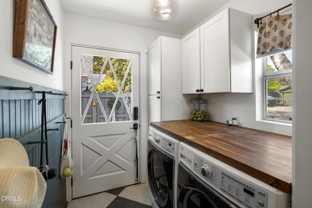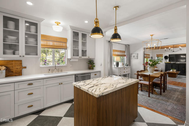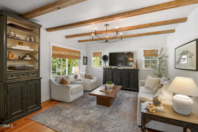 Nestled on a desirable corner lot in Pasadena's charming Normandie Heights neighborhood, this thoughtfully updated Cape Cod-style cottage blends timeless character with clean, modern design. From the moment you arrive, the inviting Dutch front door sets the tone for the warmth and style found within. Inside, hardwood flooring and an open, airy layout create a seamless flow throughout the main living spaces. Dual-pane windows invite abundant natural light, enhancing the home's fresh, purposeful aesthetic. To the right of the entry, the fully remodeled kitchen impresses with oversized tile flooring, a generous island topped with stone countertops, stainless steel appliances, a sleek range hood, custom cabinetry, and designer lighting. Just beyond, a well-designed laundry and mudroom area offers a side-by-side washer and dryer, a convenient folding counter, a charming accent wall with hanging pegs, and direct access to the side patio and detached one-car garage. The dining area, highlighted by a statement light fixture, opens effortlessly to the living room, where exposed wood-beam ceilings add warmth and architectural interest. A large picture window fills the space with sunlight, creating an inviting setting for everyday living and entertaining. Down the bedroom hallway, thoughtful details such as wainscoting and stylish lighting continue the home's cohesive design. A spacious secondary bedroom features hardwood floors, dual-pane windows, a lighted ceiling fan, and ample closet space. The remodeled hall bath showcases a stone-topped vanity, subway-tile tub and shower surround, and penny-tile flooring. A cozy third bedroom with mirrored closet doors sits nearby. At the end of the hall, the primary suite offers a peaceful retreat with hardwood flooring, a lighted ceiling fan, a walk-in closet, and a beautifully remodeled ensuite bath complete with basketweave tile flooring, a stone countertop vanity, and a glass-enclosed shower tiled to the ceiling. Outdoors, the private east-facing yard is framed by tall hedges, creating an ideal space for relaxing, entertaining, or weekend barbecues on the grassy lawn. A brick paver driveway leads to the detached one-car garage, spacious enough for a large SUV and outfitted with storage shelving. Just moments from Pasadena's renowned dining, shopping, and convenient commuter routes, this turnkey Normandie Heights gem offers classic charm, modern comfort, and effortless living in one of the city's most beloved neighborhoods.