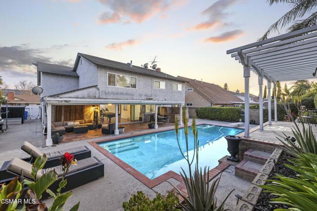 Located in the heart of Central Simi Valley, 2371 Larch St offers over 3,000 square feet of spacious living with a flexible floor plan designed for comfort and functionality. A dramatic two story entry opens to expansive living and dining areas filled with natural light, flowing seamlessly into the inviting family room and kitchen, creating an ideal setting for both everyday living and entertaining.The kitchen offers generous counter space, ample cabinetry, and a clear view of the backyard, making it the true center of the home. Upstairs, the oversized primary suite provides a private retreat with a walk in closet and an updated bath featuring dual vanities and modern finishes.A major highlight of this property is the expansive upstairs bonus room with a large closet that can easily function as a fifth bedroom. Whether you need additional sleeping space, a private office, gym, media room, or multi generational setup, this versatile room significantly enhances the home's functionality and long term value.Step outside to your private backyard oasis complete with a sparkling pool and patio area, perfect for summer gatherings, relaxing weekends, and enjoying Simi Valley's year round sunshine. The yard offers both usable space and privacy, creating a true indoor outdoor lifestyle.Situated in a quiet, established neighborhood close to parks, shopping, dining, and convenient freeway access, this home combines size, flexibility, and a resort style backyard in one of Central Simi Valley's most desirable locations.