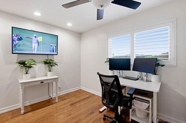 3 BED | 2 BATH | 2 CAR GARAGE | PAID SOLAR | POOL | SWEEPING VIEWS | GORGEOUS BRAZILIAN WOOD FLOORS Welcome to the Shadowhill Terrace subdivision in Santee, where year-round breezes and glowing foothill sunsets define everyday living. This beautifully maintained, darling home is COMPLETELY TURNKEY—clean, polished, & ready to be enjoyed on. day. one. Inside, rich Brazilian wood floors make an unforgettable first impression, adding warmth and elegance throughout the main living spaces. Sunlight filters through custom quality shutters, highlighting the bright, open layout. The updated kitchen features granite countertops, recessed lighting, and timeless finishes that blend character with modern convenience. Spacious bedrooms offer comfort & privacy, while fresh paint & thoughtful updates create a crisp, move-in ready feel. Step outside to your own private retreat. The dramatic black-bottom pool—complete with a safety fence—shimmers against sweeping foothill views, setting the stage for relaxed summer days and unforgettable sunset evenings. Fully paid solar (16 panels, installed approx. 5.5 years ago) provides energy efficiency and peace of mind all year long. Just around the corner, a well-kept neighborhood park offers a scenic walking & jogging trail loop with an overlook view of Santee, plus tennis courts, a basketball court, shaded playground, & picnic areas for family gatherings. Minutes away: Great Shopping, Freeway Access, Hiking Trails, Santee Lakes Recreation Preserve, San Diego Fun! Timeless charm. Modern upgrades. Stunning views. Peaceful & Private. Welcome Home.