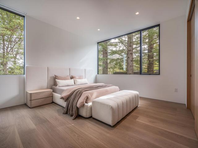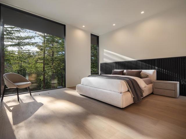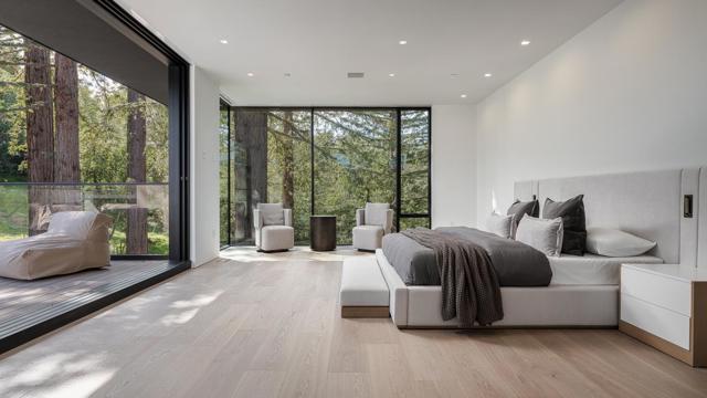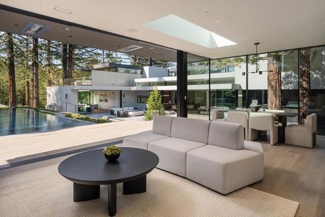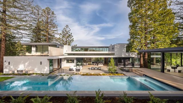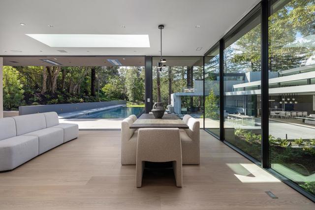 Secluded in the exclusive Country Club Manor neighborhood of Hillsborough, this fully furnished modernist masterpiece, a three story wonder of glass that floats with the forest. Designed by acclaimed, award-winning architect Leonard Ng, this iconic 11,141 sq. ft. retreat is a meditation on minimalism, an extension from the trees that questions where nature ends & home begins. Clear heart cedar and limestone walls open to vast windows, soaring lines and engaging angles that lean into natural light & wide views. 8 en-suite bedrooms, one powder room, back kitchen, home theater, great room, fitness studio and spa with full bathroom, cold plunge, wet & dry saunas and private yoga deck and Warmboard radiant heat, forced air heating and air conditioning with multi zones. Detached 800 sq. ft. 1 bedroom, 1 full bathroom guest house provide for exquisite living. A vanishing edge pool, phenomenal indoor-outdoor entertaining and meandering paths of curated native plants elevate life. Coveted location for top-performing schools, community, walk to Burlingame Country Club & an ideal commute between San Francisco and Silicon Valley. See the world in a new light.
