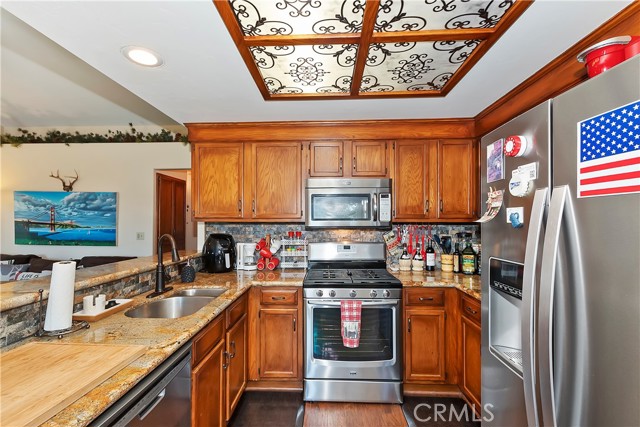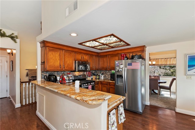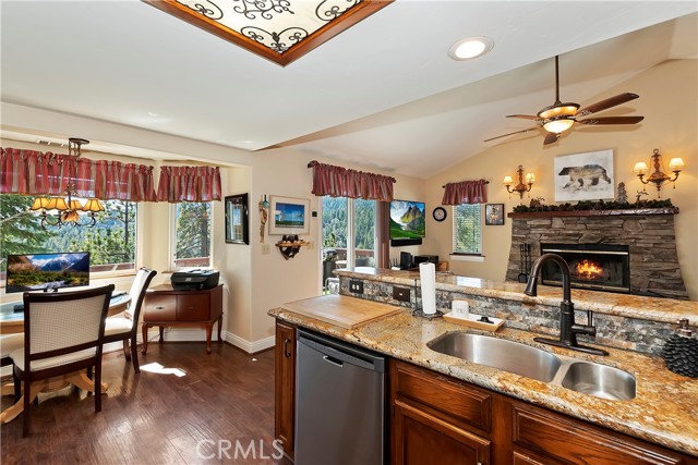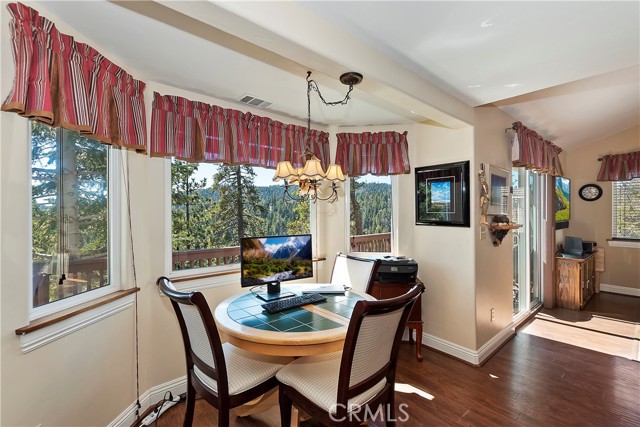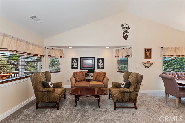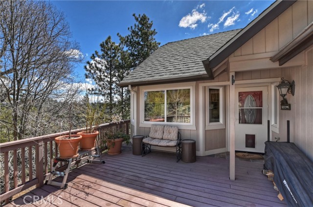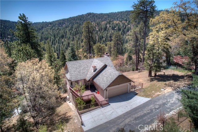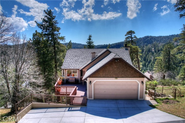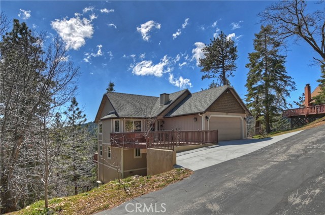 Experience the magic of Lake Arrowhead living with sweeping, long-distance panoramic forest views and exceptional privacy on a rare 17,000+ sq ft double lot. This beautifully upgraded mountain retreat, offered mostly furnished, delivers space, serenity, over $100,000 in recent enhancements and, of course, FULL LAKE RIGHTS. Step inside to warm, inviting living spaces, including a cozy family room with a wood-burning fireplace — the perfect mountain ambiance. Newer luxury carpeting flows throughout both levels, complementing the updated kitchen featuring granite countertops and refreshed cabinetry. Designed for comfort and resilience, the home now includes a 14KW Generac® whole-house standby generator with internet monitoring, 1-ton Daikin® air conditioning serving both levels, dual-pane windows, three low-maintenance TREX® decks and, a newer SunSetter® awning that extends your outdoor enjoyment. Outdoor living truly shines here. The main deck flows from the living room, while a second deck off the primary suite captures additional breathtaking panoramic views and creates a peaceful retreat. The third trex deck, located at the front of the house, offers an expansive gathering area, as well. The newer concrete driveway provides level, direct access from the 2-car garage plus expanded parking for guests or boat storage. And, the newer retaining wall with safety railing enhances both function and curb appeal. Pet lovers will appreciate the fully enclosed, top-to-bottom fenced area directly off the laundry room — a secure and protected outdoor space. Additional fenced areas offer expansion potential. Mature producing fruit trees — cherry, apple, and pear — add to the charm and lifestyle appeal. As an added bonus, the seller will include a newer 24” Ariens® snow blower (with chains and upgrades) — making mountain living turnkey and ready for all seasons. Three bedrooms, 2.5 baths, with an open family room with fireplace, separate living room, & dining room, and unmatched long-distance forest views complete this exceptional opportunity. Ask your agent for the comprehensive list of recent improvements — this one is truly special.