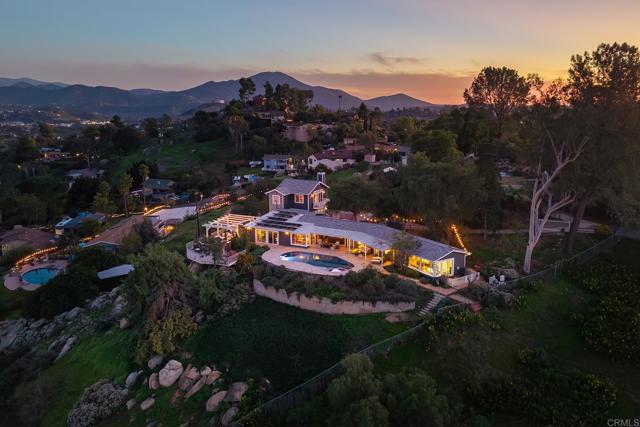 ABSOLUTELY STUNNING REMODELED 4 BEDROOM PLUS DETACHED EXTRA ROOM/POSSIBLE ADU, 3 BATH SINGLE STORY HOME WITH 2826 SQ FT ON 2 ACRES ON MT MERRITT WITH INCREDIBLE PANORAMIC VIEWS AND THIS ONE IS LOADED, INCLUDING PAID FOR SOLAR, NEWER ROOF, NEW GUTTERS, FRESHLY PAINTED INSIDE AND OUT, SPACIOUS LIVING ROOM WITH FLOOR TO CEILING WINDOW TO REALLY TAKE IN THE VIEWS AND A FIREPLACE, VAULTED EXPOSED WOOD CEILINGS, LVP FLOORING, CUSTOM LIGHTING, MOSTLY DUAL PANE WINDOWS, LARGE PRIMARY BEDROOM WITH DUAL CLOSETS AND ORGANIZERS, UDPATED PRIMARY BATH WITH CLAW TUB, DUAL VANITY AND A WALK-IN SHOWER, BEAUTIFUL KITCHEN WITH GRANITE COUNTERS AND STAINLESS APPLIANCES, SPACIOUS GUEST BEDROOMS, VIEWS FROM ALMOST EVERY ROOM, OVERSIZED FINISHED 2 CAR GARAGE WITH BUILT-IN STORAGE, PROFESSIONALLY LANDSCAPED YARD WITH NEWLY RESURFACED POOL AND SPA, COVERED PATIO, TRAVERTINE DECKING, BUILT IN BBQ WITH LARGE VIEW DECK WITH TILE FLOORING, ARTIFICIAL TURF, FOUNTAINS, LARGE MATURE TREES, INCREDIBLE PRIVACY, GATED ENTRY WITH LONG PRIVATE DRIVEWAY, RV PARKING, WORKSHOP AREA AND MUCH MORE.