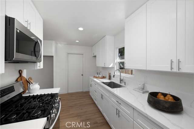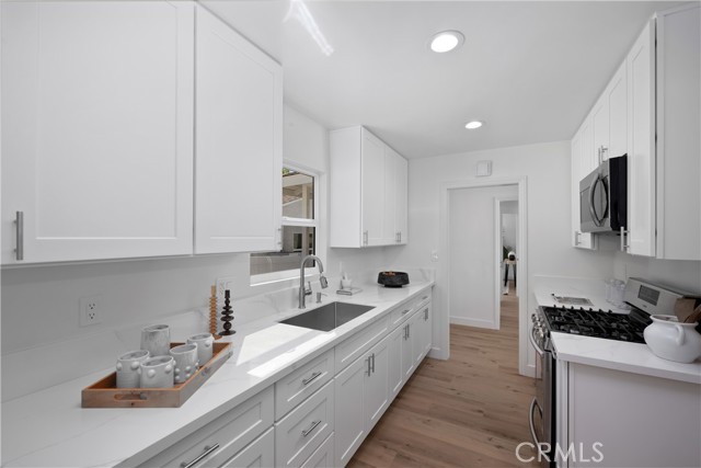 Set just moments from the energy of Old Town Monrovia, this beautifully remodeled duplex presents an exceptional opportunity for both investors and owner-occupants. Thoughtfully upgraded throughout, each unit offers 3 bedrooms and 1 fully updated bath, blending modern finishes with bright, functional living spaces. Both interiors have been refreshed with new flooring, fresh paint, recessed lighting, and an abundance of natural light. The living rooms feel open and inviting, with elegant French doors leading to an enclosed patio — creating additional flexible space for relaxing or entertaining. The updated kitchens are light and welcoming, featuring new cabinetry, countertops, and dedicated breakfast nook areas, along with a separate dining area just off the living room. Bathrooms have also been tastefully remodeled, completing the cohesive, move-in-ready appeal of each unit. The front unit offers 996 square feet, while the rear unit provides 1,027 square feet of comfortable living space. Behind the rear unit, a rare 4-car garage allows for separated parking for both residences, offering convenience and privacy. Located within walking distance to Old Town Monrovia’s restaurants, shops, and neighborhood amenities, this property offers strong income potential, whether renting both units or living in one while generating income from the other.