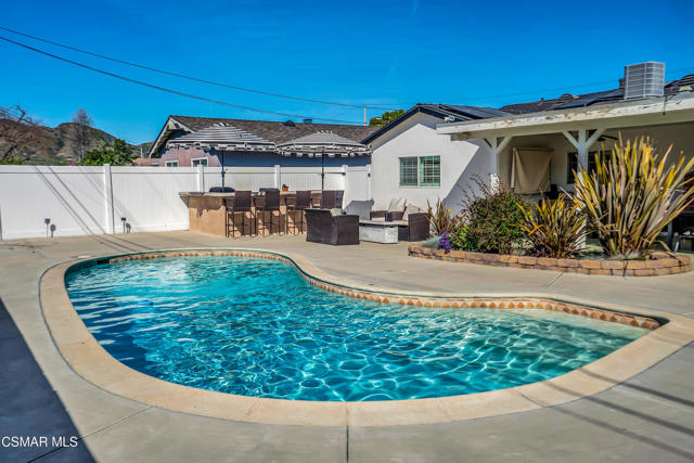 Pictures will be up by Friday March 20, 2026 . First showing: March 22, 1:00PM to 4:00PM. All you need to do is pack and move in! This nicely done 4-bedroom, 2-bathroom home in Newbury Park offers a clean, modern aesthetic and a highly functional open floor plan. The heart of the home is a tastefully renovated kitchen that flows directly into the living and dining areas, creating a welcoming space for daily life. This home is conveniently located just minutes from local shopping centers and sits within a distinguished school district, making it as practical as it is charming.The entertainment-ready backyard is a true private oasis designed for making memories. Imagine spending your weekends lounging by the sparkling pool or hosting a BBQ for friends and family seating under the fanned covered patio. All while taking in the serene, unobstructed mountain views. For those who love the outdoors, you are just a short distance from world-class hiking trails, offering endless adventures right in your backyard.Situated on a large cul-de-sac lot, the property provides plenty of privacy and room for all your toys with rare, sought-after RV access and a 2-car attached garage. Major technical upgrades have already been handled for you, including a new roof (2020), a new water heater, updated bathrooms, and a solar system for energy efficiency. If you are looking for a well-maintained, updated home in a prime location with a backyard built for fun, this is the one!