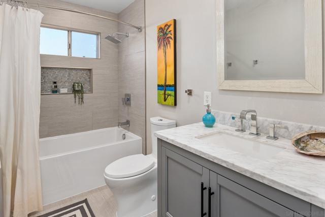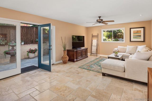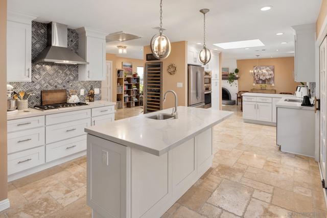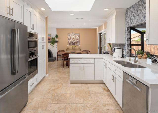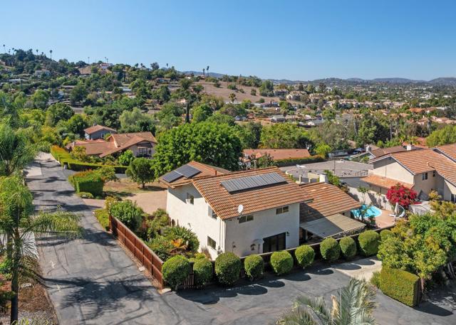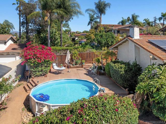 Stunningly RENOVATED VIEW HOME is primely located on a private hillside cul-de-sac. Enjoy amazing sunsets from your living room or deck. Serenity surrounds you with lush gardens & several fruit trees on a generous lot. Energy Efficient w/ 27 OWNED SOLAR panels. The expanded quartz kitchen & baths along w/ travertine & hardwood flooring will impress. Other features: above ground pool, deck & pergola, abundant parking. Your own PRIVATE PARADISE! No HOA or Mello-Roos Tax. See Links. Fruit trees galore at this Peaceful Retreat providing orange, lemon, lime, grapefruit, persimmon & avocado. The lush flora attracts butterflies & hummingbirds! The GOURMET KITCHEN, renovated in 2018, has quartz counters, designer fully-tiled backsplash, stainless appliances & multiple pull-outs. A prep/storage island w/ 2nd sink & bar seating is illuminated by dual pendants. The 5-burner gas cooktop is accented by a stately vent hood. The Bosch dishwasher is super quiet. Natural light flows through the lovely bay window & skylight. A custom wine cabinet holds 144 bottles. The fireplace was enhanced w/ an artificial log set. The rich hardwood staircase leads to a spacious primary retreat w/ ensuite bath & walk-in closet. The step-in shower boasts a bench seat & inset shelf. A renovated 2nd bath serves the other bedrooms. Lounge by the pool, BBQ, & enjoy gatherings. Large driveway=guest parking. The drywall lined garage w/ epoxy floor has many racks, cupboards, shelves & tool bench, offering storage options.