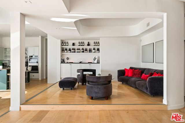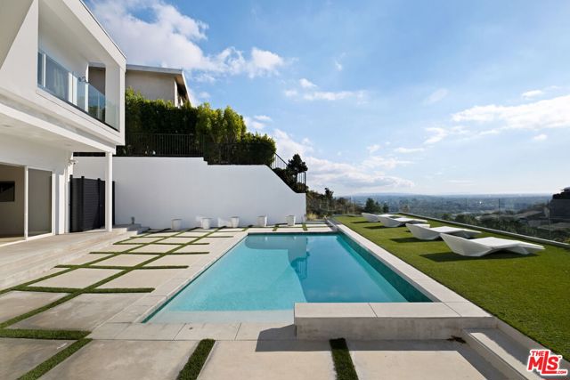 A stunning contemporary, perched atop the city with panoramic views to the ocean. Quietly sited in Mt. Olympus, but only a moment from the Sunset strip and all the city has to offer. Public rooms on the ground level that open out to the pool with western exposure that baths the house in light throughout the day and offers unmatched sunsets. A primary suite with a wall of windows that frame the Hollywood Hills and the city below, and an ensuite bathroom with 2 walk in closets, a steam shower and soaking tub. In total 3 ensuite bedrooms upstairs, and a 4th bedroom/office on the ground level. Perfect for entertaining; easy access and the rarity of ample parking in hills - all located in the heart of the city. This is consummate Indoor-outdoor living at its finest - privacy and proximity - the best of life in LA.