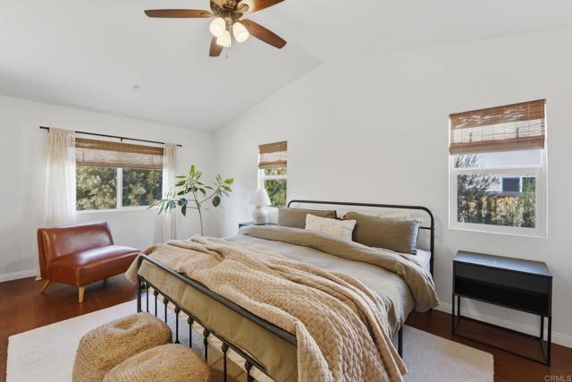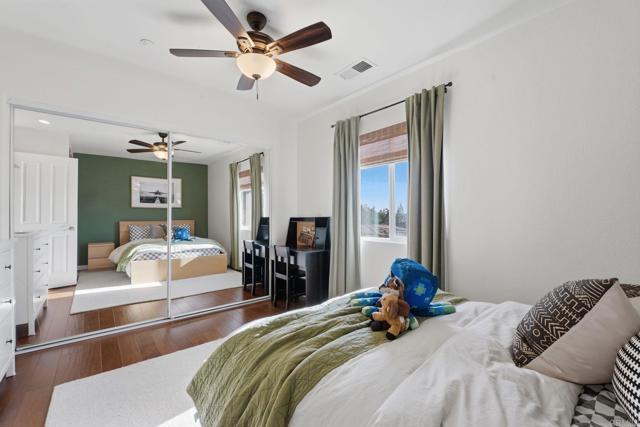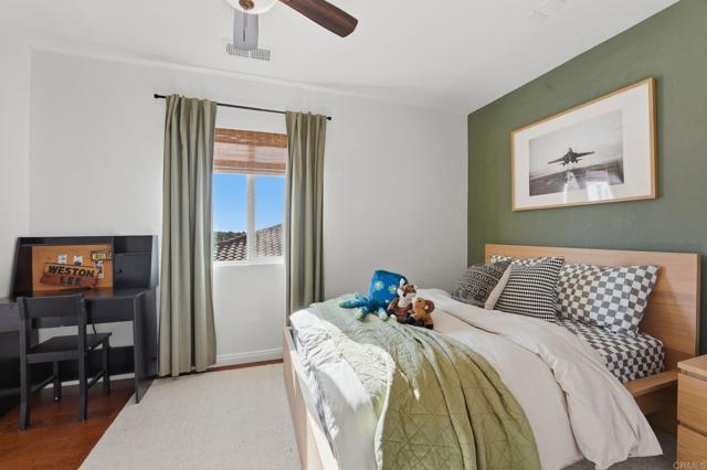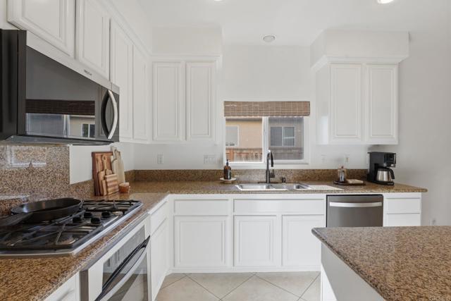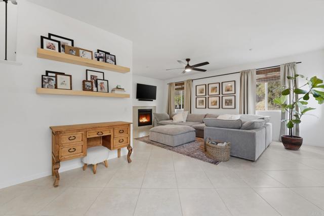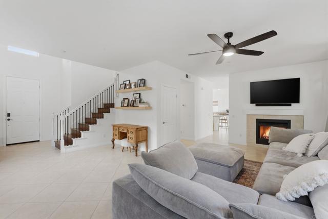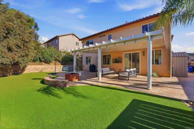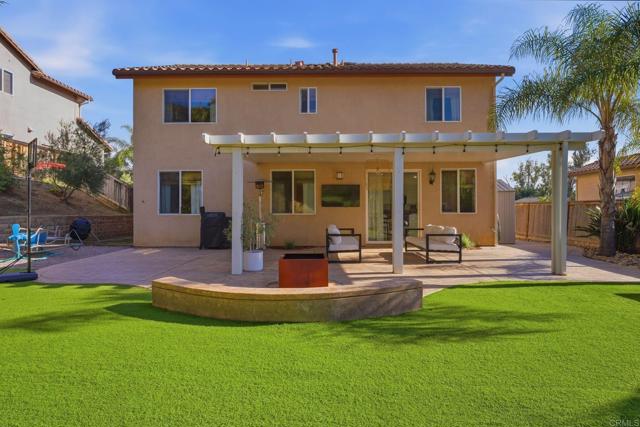 Welcome to a beautifully maintained residence where thoughtful design, abundant natural light, and effortless indoor outdoor living come together in perfect balance. From the moment you step inside, the home feels bright and welcoming. Soaring ceilings and expansive windows allow sunlight to pour through the main living spaces, creating an open and airy atmosphere throughout. The main level flows seamlessly, connecting the living room, dining area, and kitchen in a layout that is both functional and inviting. The main living room offers generous space for gathering and relaxing, anchored by a cozy fireplace. The open layout allows for easy entertaining while still maintaining a warm and comfortable everyday living environment. The dining area is both stylish and practical, featuring a custom built in banquette that creates an intimate space for meals, conversation, and family gatherings. Sliding glass doors open directly to the backyard, extending the living space outdoors. Step outside to a spacious covered patio designed for year round enjoyment. The backyard offers ample room for lounging, dining, and recreation with artificial turf, a play area, and mature landscaping that provides privacy and a peaceful hillside backdrop. It is a space perfectly suited for entertaining, relaxing, and making the most of Southern California living. Upstairs, well sized bedrooms continue to impress featuring wood flooring. The primary suite showcases vaulted ceilings and a calm, comfortable ambiance that makes it an ideal retreat at the end of the day. The spacious primary bathroom includes dual vanities and a clean, modern design. Secondary bedrooms provide flexibility for family, guests, or home office needs. Throughout the home, clean lines, neutral finishes, and thoughtful design choices create a timeless aesthetic that allows the next owner to move right in while still offering room for personal touches. With its bright interior, flexible living spaces, and inviting outdoor areas, this home delivers a rare blend of comfort, functionality, and modern California lifestyle.