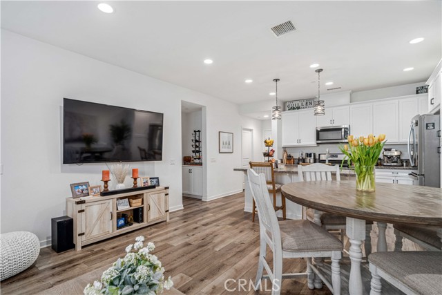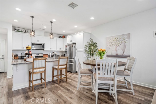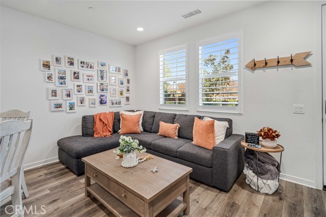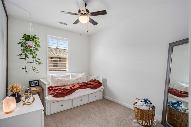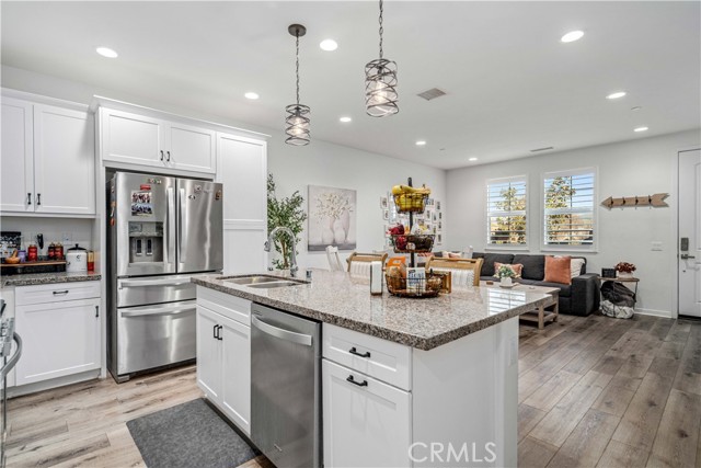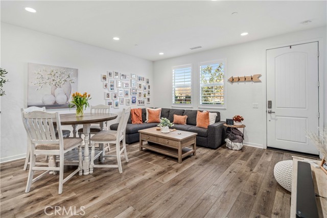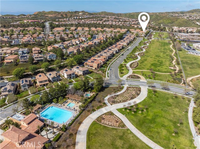 Rare park-front opportunity in Valencia’s highly desirable West Creek community, offering scenic views and direct access to the park & paseo trail system. Welcome to this beautifully maintained home located in the Paloma neighborhood of West Creek in Valencia. Perfectly positioned fronting a large community park and paseo trail system with scenic mountain views in the distance, this 3-bedroom, 2.5-bath residence offers approximately 1,440 square feet of stylish, move-in ready living. A charming gated front patio and landscaped entry provide a welcoming outdoor space to relax and enjoy the open greenbelt setting just beyond your front door. Inside, the home features a bright open-concept floor plan with luxury vinyl plank flooring downstairs, plantation shutters throughout, recessed lighting, and a whole house fan. The kitchen is both functional and inviting with granite countertops, stainless steel appliances, white cabinetry, and a large center island with bar seating, seamlessly opening to the dining and living areas. Upstairs, the primary suite offers a spacious retreat with park views, a walk-in closet, and an ensuite bathroom featuring dual sinks, glass-enclosed shower. Two additional bedrooms provide flexible space for guests, family, or a home office, along with a convenient upstairs laundry room. Additional highlights include an attached two-car garage and nearby guest parking. Residents enjoy HOA amenities including a community pool, spa, BBQ area, and bathrooms, along with easy access to nearby parks, scenic trails, shopping, and Rio Norte Junior High School. This home offers the perfect combination of park-front living, mountain views, and turnkey comfort in one of Valencia’s most sought-after communities.