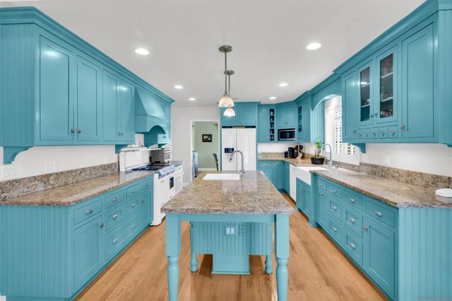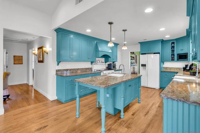 Super charming and highly upgraded 3BR/3BA with 2022 SqFt on oversized 10,495 SqFt lot. Beautiful open kitchen to family room area. The country kitchen has an antique range plus extra oven, farm sink, huge island, plenty of counter/cabinet space, and a pantry. Formal dining room has hardwood floors, bay window. Large living room has bay window and wood burning fireplace. 2 primary suites are in the same hallway. The baths have gorgeous tile and oversized showers. Wood shutters in the living room, primary bedroom and kitchen. Built in office area. Meticulous, lush yard with white picket fences, cement curb planters, flowering plants and mature trees. Rear yard has a swimspa, outdoor kitchen, fire pit and low maintenance grounds. Take advantage of the fully funded 19 panel, rooftop solar. The pool/spa "Swimspa" has separate electric heaters for each. There's room for toys with the 2 car garage, 2 driveway parking, and 2 spot RV/boat/trailer/car/truck parking off the alley. Extras include vinyl fencing, tankless water heater, hardwood floors, whole house water purifier, whole house fan, 3 retractable screens for summer days, separate laundry room, forced heat and air conditioning. Centrally located with easy freeway access, and walkable to La Mesa Village restaurants and shops. Home Sweet Home! Super charming and highly upgraded 3BR/3BA with 2022 SqFt on oversized 10,495 SqFt lot. Beautiful open kitchen to family room area. The country kitchen has an antique range plus extra oven, farm sink, huge island, plenty of counter/cabinet space, and a pantry. Formal dining room has hardwood floors, and bay window. Large living room has bay window and wood burning fireplace. 2 primary suites are in the same hallway. The baths have gorgeous tile and oversized showers. Built in office area. Meticulous, lush yard with white picket fences, cement curb planters, flowering plants and mature trees. Rear yard has a swimspa, outdoor kitchen, fire pit and low maintenance grounds. Take advantage of the fully funded 19 panel, rooftop solar. The pool/spa "Swimspa" has separate electric heaters for each. There's room for toys with the 2 car garage, 2 driveway parking, and 2 spot RV/boat/trailer/car/truck parking off the alley. Extras include vinyl fencing, tankless water heater, hardwood floors, whole house water purifier, whole house fan, 3 retractable screens for summer days, separate laundry room, forced heat and air conditioning. Centrally located with easy freeway access, and walkable to La Mesa Village restaurants and shops. Home Sweet Home!