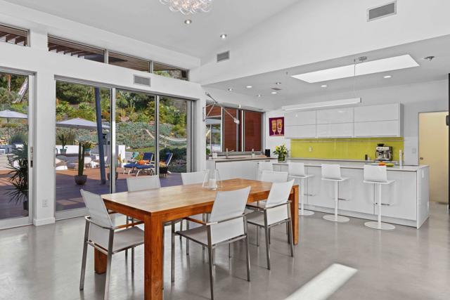 Welcome to one of La Jolla’s premier contemporary villas, a private architectural retreat where modern European design meets the effortless indoor-outdoor lifestyle of coastal Southern California. Tucked away on a quiet cul-de-sac in the coveted Muirlands neighborhood, 6672 Avenida Andorra offers exceptional privacy, refined design, and a sense of calm just minutes from the ocean. Built in 2010/2011 and thoughtfully enhanced, this stunning single-level residence spans approximately 3,437 square feet and sits on a beautifully landscaped, nearly half-acre lot. The home features four spacious en-suite bedrooms, each with its own private bathroom, plus a dedicated office ideal for remote work or creative pursuits. - Architectural Design & Light-Filled Living - From the moment you enter, the home reveals its striking contemporary character. The architect was Tim Golba. The expansive great room is defined by soaring ceilings, walls of glass, and a dramatic exposed structural beam that adds a bold industrial architectural statement to the space. Large sliding and disappearing glass doors dissolve the boundary between interior and exterior, filling the home with natural light and creating a seamless connection to the surrounding outdoor environment. The open-concept living space flows effortlessly between the living room, dining area, and chef’s kitchen, creating the perfect setting for both everyday living and elegant entertaining. The gourmet kitchen, equipped with premium Miele appliances, a large center island, and a spacious walk-in pantry, opens directly to the great room and outdoor terraces. Throughout the home, refined finishes and warm hardwood flooring bring balance and comfort to the modern aesthetic. The primary suite offers a peaceful sanctuary with disappearing glass doors that open directly to the backyard, creating a tranquil connection to the pool and gardens. - Private Resort-Style Outdoor Living - Step outside and discover your own private resort retreat. The expansive backyard is designed for relaxation and entertaining, featuring a luxurious heated pool, private hot tub, fire pit, and multiple terraces for lounging and outdoor dining. Beautiful IPE wood decks, a covered patio, and generous entertaining spaces create a seamless extension of the interior living areas. Mature landscaping and the property’s orientation provide exceptional privacy, transforming the backyard into a peaceful oasis. - Comfort, Efficiency & Everyday Luxury - The home’s single-level layout offers effortless living, while an oversized two-car garage provides extensive built-in storage. Natural light fills every room, enhancing the calming atmosphere throughout the residence. Two owned solar systems, totaling more than 10 kW, provide exceptional energy efficiency and long-term savings, an elegant blend of sustainability and modern comfort. - A Premier Coastal Location - Perfectly positioned just minutes from La Jolla Shores, Windansea Beach, and Tourmaline Surf Park, this exceptional property places the best of coastal living at your doorstep. Top private schools, renowned restaurants, boutiques, museums, and art galleries are all within easy reach, along with the vibrant charm of La Jolla Village. Whether enjoying surf-filled mornings, sunset walks along the coast, or elegant evenings entertaining at home, 6672 Avenida Andorra offers the ultimate Southern California lifestyle. Seller to select services. All info, Room dimensions & square footage are approximate, per assessor's record.