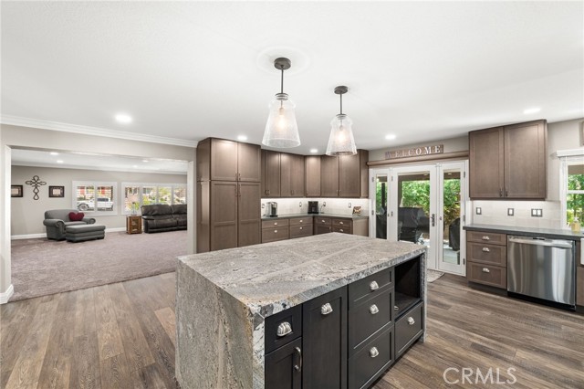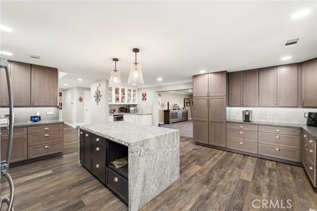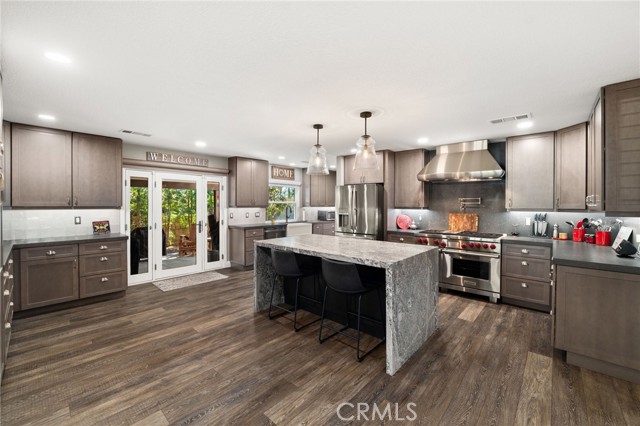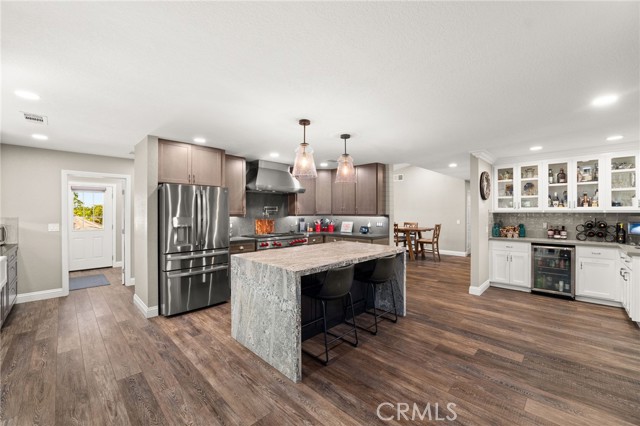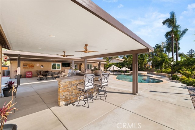Welcome to 2241 N Campus Ave in Upland, a beautifully upgraded single-story home offering 4 bedrooms, 2 bathrooms, and nearly 2,900 sq ft of thoughtfully designed living space where everyday comfort meets exceptional indoor-outdoor living. From the moment you step inside, the home opens into spacious, light-filled living areas highlighted by recessed lighting, luxury vinyl plank flooring, and an inviting open layout that creates the perfect setting for both relaxed daily living and entertaining family and friends. The heart of the home is the stunning remodeled kitchen, featuring custom cabinetry, quartz countertops, a striking granite waterfall island, farmhouse sink, stainless steel appliances, a high end Wolf range, and a convenient wet bar beverage station, perfect for hosting gatherings or enjoying a quiet morning coffee while overlooking the backyard. The spacious living and dining areas flow effortlessly together, creating a warm and welcoming environment where memories are made. Retreat to the primary suite, where the beautifully designed spa-inspired bathroom offers a peaceful escape with a freestanding soaking tub, dual vanities, and a large walk-in glass shower. Step outside and discover a backyard designed to feel like your own private resort in paradise. Whether you're enjoying warm Southern California evenings by the pool, hosting weekend barbecues, or relaxing under the expansive covered Alumawood patio with ceiling fans, this outdoor space was built for year-round enjoyment. The built-in outdoor kitchen and BBQ island make entertaining effortless, while the sparkling pool and spa provide the perfect place to unwind after a long day. Additional highlights include RV parking with gated access, PAID OFF solar panels for year round energy efficiency, an oversized fully finished detached garage ideal for a workshop, gym, or additional storage, and a large driveway offering ample parking. Nestled in a desirable Upland neighborhood near the foothills, this home offers the perfect balance of space, comfort, and lifestyle...where beautiful sunsets, mountain views, and unforgettable gatherings become part of everyday life. Don't miss your chance to make this beauty your very own paradise!