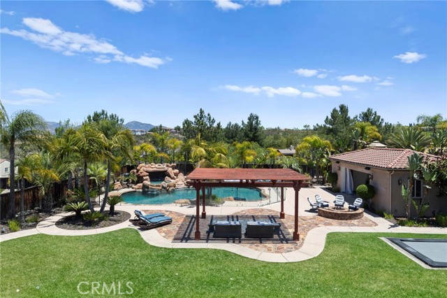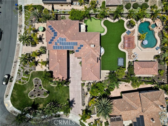 Welcome to your private tropical oasis in the prestigious Sanctuary at Stonebridge Estates. This stunning estate sits on an expansive, beautifully landscaped lot and is an entertainer’s dream. The resort-style backyard features a sparkling pool and spa, fully equipped outdoor cabana, manicured lawns, putting green, raised garden planters, fire pit, glass pool fencing, and owned solar. Inside, enjoy a chef’s kitchen that opens to spacious living areas, a first-floor guest suite, and an upstairs primary retreat with mountain views, dual walk-in closets, spa-like bath, and private sitting area. Over $250K in recent upgrades include soundproofing between floors, pocket sliding doors in the dining room, crown molding, casita remodel, full interior paint, and more. A true blend of luxury, comfort, and indoor-outdoor living.