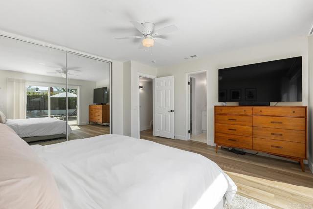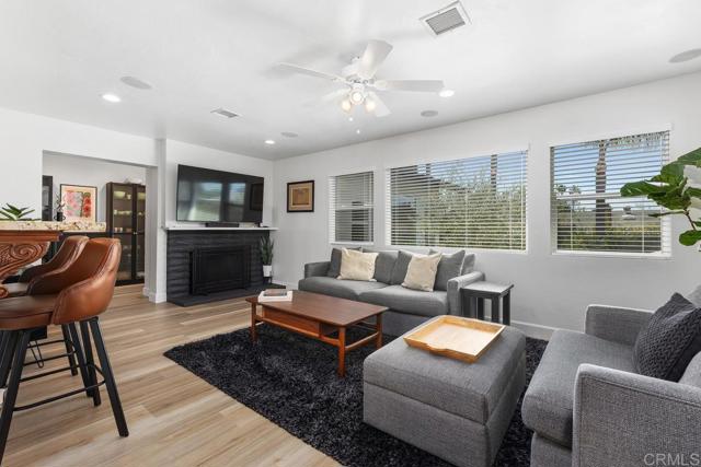Enjoy relaxed coastal living in this beautifully updated, very private home featuring a resort-style backyard with a pool, spa, owned solar, ocean views, and no HOA. The main living spaces feel open and inviting with luxury vinyl plank flooring throughout and an easy flow between the kitchen, dining, and living areas. The living room offers a fireplace and surround sound, while the kitchen is equipped with granite countertops, stainless steel appliances, and bar seating that connects comfortably to the living space. The adjacent family room opens with a sliding door to the yard, where the BBQ island and patio overlook the pool creating a seamless indoor-outdoor connection ideal for entertaining. Remodeled half bath completes the main level. Upstairs offers three bedrooms and two updated bathrooms. Two bedrooms share a Jack-and-Jill bath, while the third is served by a separate hall bathroom. Two of the bedrooms open to a spacious deck where you can enjoy mountain and ocean views on clear days. The primary suite provides a private retreat with direct access to the backyard and pool, along with a beautifully remodeled bathroom featuring dual sinks and a walk-in shower. The backyard is designed for both relaxing and entertaining with a multi-level layout, pool and spa, and a covered patio with a BBQ island, all surrounded by mature landscaping. The pool includes a pebble finish, saltwater system, recently replaced pool vacuum, and solar heating. Additional improvements and features include owned solar, air conditioning, newer windows, interior and exterior paint, updated blinds, a closet organizer in the primary bedroom, ceiling fans in all bedrooms, a Ring doorbell, an Ecobee thermostat, a whole-house fan, updated fixtures, epoxy garage flooring with built-in storage, modern garage door and a finished storage area beneath the home. Conveniently located near parks, shopping, schools, and a short drive to the beach.