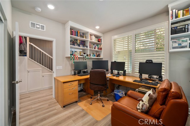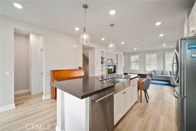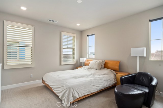 Fabulous Regatta by Meritage Homes - Newly completed in 2022. Close to the surf, pier, shopping, pickleball courts, and all the entertainment and dining at Seacliff Shopping Center, Main Street and Pacific City. This incredible premium end-unit location offers the largest model with 4 generous bedrooms and 3.5 baths. This floor plan includes a main level bedroom with private bath designed with wider door openings, generous sized shower and lower countertops. This Light and Bright home includes over $75,000 in after-market upgrades featuring additional custom cabinetry, closet organization systems, and more! The beautifully designed floor plan is highlighted with tall ceilings and many over-size windows for lots of natural light throughout the home. The main living space on the second level is open and spacious with a large sunrise view lanai ideal for outdoor dining and entertainment. The modern chef’s kitchen is equipped with a large center island finished with custom quartz countertops and a breakfast bar. Energy-efficient stainless steel appliances, custom backsplash, and beautiful white cabinets with soft-close drawers are great finishing touches. This level also includes a spacious family room with custom built-ins, large dining area, and the guest bath. The top level gives you 3 more bedrooms, including the spacious primary suite with sunset views. The primary offers a large fully upgraded walk-in closet, and private bath with a luxurious walk-in shower and dual wash basins surrounded with quartz counters and added linen cabinets. A large laundry room is also located on this level for added convenience. This new 2022 construction is beautifully finished in wood-vinyl wide-plank flooring, recessed lighting, modern lighting fixtures, dimmer switches, and $20,000 in upgraded plantation shutters and blinds. Additional features include the whole-house fan, dual zone air conditioning and heating systems, energy efficient tankless water heater, 360-degree camera security system, and $7,000 in custom acoustic designer wall paneling. The direct access spacious two-car garage includes EV charging, upgraded epoxy flooring, and custom paint. Easy walk or bike ride to Huntington Beach High, the elementary and Jr. High schools – and short bike ride to the year-round events at the beach and pier. This home is move-in ready for you to immediately enjoy the beach life in beautiful Huntington Beach!