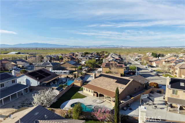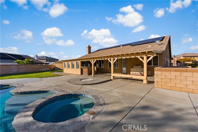 Beautiful single-story pool home in desirable West Lancaster offering 2,677 sq ft of upgraded living space on a rare double lot. This home features formal living and dining rooms plus a spacious family/great room with built-in entertainment center, bookcase, surround sound (never utilized by seller) and gas fireplace, all open to a chef's kitchen with granite countertops, large center island with breakfast bar, upgraded cabinetry, and abundant counter space. The primary suite includes a private bathroom with dual sinks, soaking tub, separate shower, and large walk-in closet. Three additional bedrooms provide flexible living space, including one with its own private bathroom. Interior highlights include oversized tile flooring, plantation shutters, ceiling fans, high ceilings, and an indoor laundry room with sink and cabinets. Attached 3-car garage. Energy-efficient Sunrun solar installed approx. 3 years ago "Solar system included with property." The backyard is designed for entertaining and relaxation with a sparkling in-ground pool and spa and built-in BBQ/bar, and covered patio with ceiling fans and lighting. The expansive lot also offers gated RV access, half-court basketball/sport court, shed, and play area. Block wall fencing and landscaped front and back yards complete this impressive property. A must-see home with space, upgrades, and resort-style amenities.