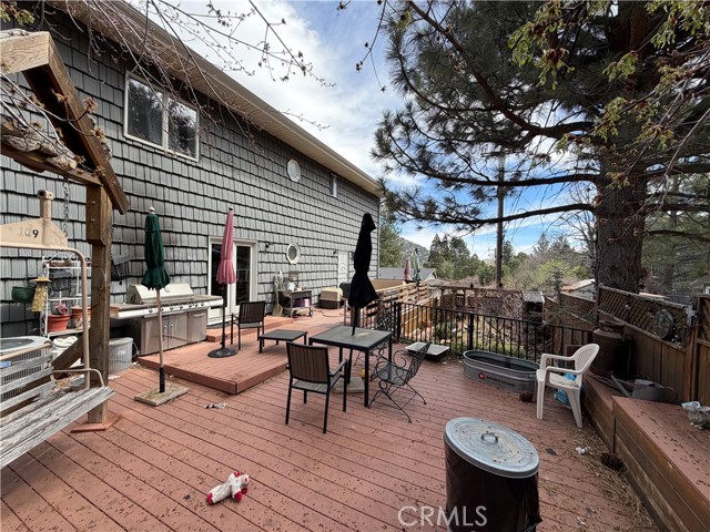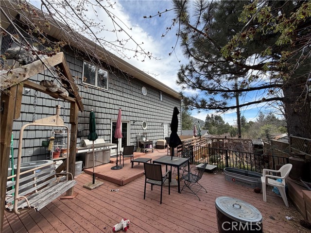Nestled in the charming mountain community of Wrightwood, this unique 2-bedroom, 2-bath home offers nearly 2,500 square feet of spacious living. Built with durable steel construction, the property blends strength with comfort and style. Inside, you’ll find wood laminate flooring, a beautifully finished stone-tiled kitchen, ceiling fans throughout, an included water softener, and an inviting wet bar—perfect for entertaining. A generous loft area provides flexible space for a game room, office, or additional lounge. The attached 2-car garage includes a dedicated workshop area along with access to a basement—ideal for projects, storage, or hobby use. Step outside to a beautiful wood deck complete with an outdoor BBQ grill, perfect for relaxing or hosting while enjoying the fresh mountain air. While many homes in the area do not offer air conditioning, this home includes A/C for added year-round comfort. Located in a sought-after destination, Wrightwood is especially popular in the winter months for skiing and snow play, making this property an ideal mountain retreat or full-time residence.