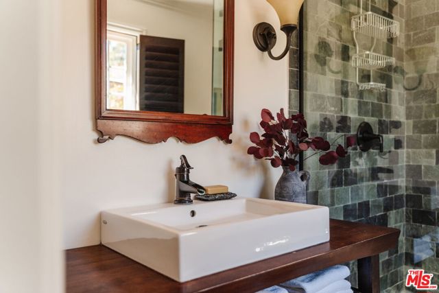 Tucked into a quiet hillside, this Tujunga retreat blends refined design with a sense of warmth and creative possibility. The main level offers 3 bedrooms and 2 baths, including a primary suite with en-suite bath and adjoining sunroom. A spacious living room anchors the home with soaring ceilings, a stone-clad fireplace, and stained glass windows, while the updated kitchen frames treetop views. Below, a fully independent creative suite unfolds with kitchenette, full bath, and bonus areas; well-suited for a studio, workspace, or guest quarters. Layered outdoor spaces include an expansive deck, a back patio with hot tub, and a hilltop gazebo that captures the natural beauty and quiet of Tujunga. Gated entry and covered parking complete the offering. A rare balance of a spacious layout, privacy, and creative potential in a stunning natural setting.