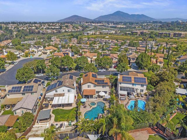 ONE-OF-A-KIND! You don't want to miss this opportunity, resort-style living awaits in this beautifully upgraded home featuring a private tropical backyard oasis. Designed for both relaxation and entertaining complete with a sparkling heated private pool with slide, spa with waterfall, multiple seating areas, a covered patio, fire feature, outdoor shower, and custom terrace areas with oranges, lemons, mango, banana, guava, passion & dragon fruit trees! The house welcomes you with timeless updates throughout including luxury vinyl plank flooring, recessed lighting & ceiling fans, 5 bedrooms + office area, 3 bathrooms, over 2,300 esf., separate laundry room where washer and dryer convey, one bedroom with shower/bathroom access downstairs, formal living room with backyard tropical views, formal family room open to dining area and highly upgraded kitchen, all appliances convey including refrigerator, oversized 2 car garage with custom storage built-ins, paid for solar (5.76kw), 4+ driveway parking spaces - enough room for RV or Boat, walk-in closets, primary suite with separate shower, tub and toilet areas, high ceilings and an open floor plan filled with tons of natural light! The house is located in the pristine neighborhood of Otay Ranch, Village 5 with extremely low HOA dues of only $138.98/month. Offering a resident only community recreation center, pool/spa in addition to a community park with playground, basketball courts, and designated trails for potential walking, jogging and biking. The well rated school districts include Chula Vista Elementary and Sweetwater Union. ONE-OF-A-KIND! You don't want to miss this opportunity, resort-style living awaits in this beautifully upgraded home featuring a private tropical backyard oasis. Designed for both relaxation and entertaining complete with a sparkling heated private pool with slide, spa with waterfall, multiple seating areas, a covered patio, fire feature and custom terrace areas full of lush landscaping! The house welcomes you with timeless updates throughout including luxury vinyl plank flooring, recessed lighting and ceiling fans, custom built -ins, 5 bedrooms + office area, 3 bathrooms, over 2,300 esf., separate laundry room where washer and dryer convey, one bedroom with shower/bathroom access downstairs, formal living room with backyard tropical views, formal family room open to dining area and highly upgraded kitchen, all appliances convey including refrigerator, oversized 2 car garage with custom storage built-ins, paid for solar (5.76kw), 4+ driveway parking spaces - enough room for RV or Boat, walk-in closets, primary suite with separate shower, tub and toilet areas, high ceilings and an open floor plan filled with tons of natural light! The house is located in the pristine neighborhood of Otay Ranch, Village 5 with extremely low HOA dues of only $138.98/month. Offering a resident only community recreation center, pool/spa in addition to a community park with playground, basketball courts, and designated trails for potential walking, jogging and biking. The well rated school districts include Chula Vista Elementary and Sweetwater Union.