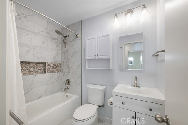 Enjoy beach close living in this move-in ready single story 3BR, 2BA, 1514 SF inside tract home on large 6300 SF lot in Huntington Beach’s highly desirable South Shores community. The home is upgraded with newer laminate flooring, dual pane windows, window shades and fresh paint throughout and central air conditioning. The large brick inlaid driveway leads to an oversized 462 SF garage with built-in cabinet, laundry area with washer and dryer (included) and door to backyard. The entry opens to a huge living room with custom flagstone fireplace with hearth and multiple windows providing natural light. The spacious kitchen has quartz counters, an abundance of cabinets, stainless steel appliances including a refrigerator (included), double oven, dishwasher and microwave and a built-in desk. Adjacent to the kitchen is a large dining area with slider opening to the outside patio. The hallway to the bedrooms has a large linen cabinet and coat or storage closet. The primary bedroom suite’s bathroom has a custom shower and door opening to the backyard patio. The other two bedrooms are roomy and have the second bathroom with tub/shower across the hall. The home has a massive pool size backyard with spacious concrete patio, planters for a green thumb gardener and two Kiter Jumbo walk in storage sheds. The home is conveniently located in South Huntington Beach a short distance from Huntington state and city beaches and near many popular dining and shopping destinations. The seller is providing a one-year home warranty.