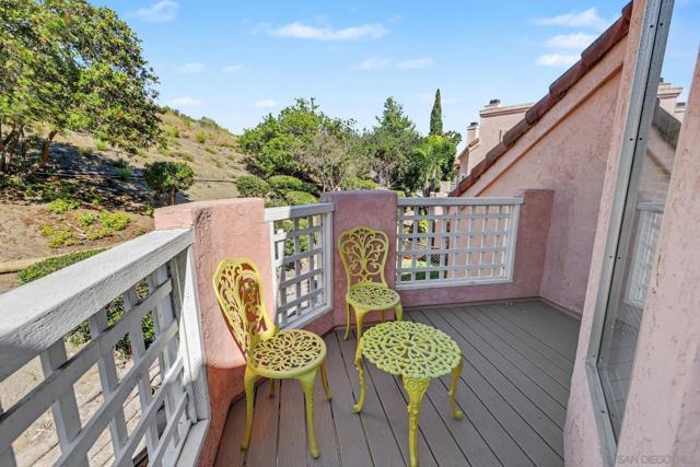 Discover the perfect blend of privacy and relaxation in this rarely available 2 bedroom, 2 bath Rancho Villas townhome. This cottage-style design end unit has only one shared wall and no neighbors above or below, offering a sense of tranquility and space. Step inside to discover real hardwood floors that flow throughout the home and are anchored by a welcoming gas fireplace. Peace of mind comes with the new HVAC system and water heater, both installed last year. The home shines from a host of updates, including completely new bathroom flooring, fresh paint throughout the interior and garage, new light, bathroom and kitchen sink fixtures, and new blinds. Is it modern convenience you seek? Say no more as the home comes with a 2025 Nest thermostat and smart garage door opener that connects to your phone and is enabled for secure deliveries. All appliances are included, featuring a new dishwasher and washer and dryer set, adding incredible value and practicality. This home's unique 2-story layout features a convenient downstairs bedroom and full bath, providing the perfect space for guests, a home office, or multigenerational living. Enjoy your very own spacious and private back patio, or retreat to the primary suite upstairs, complete with its own serene balcony. All this combined with a low HOA that includes three pools and spas, two tennis courts, and a well-equipped gym make this a top choice for the best in Rancho San Diego living. Come experience the ease of a low-maintenance lifestyle paired with the comfort and convenience you’ve been searching for. VA & FHA approved!