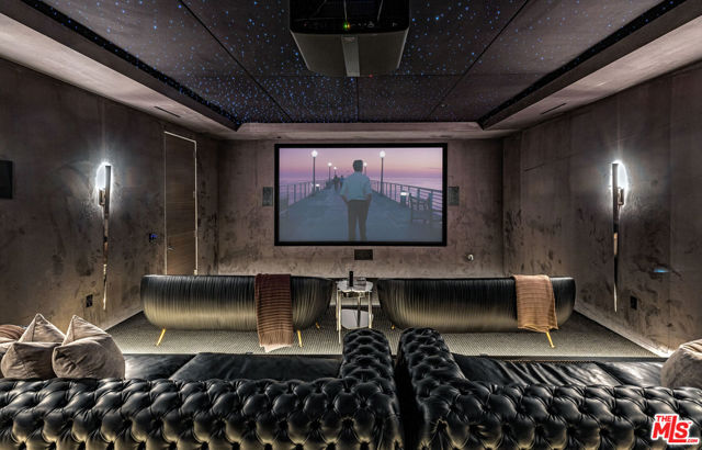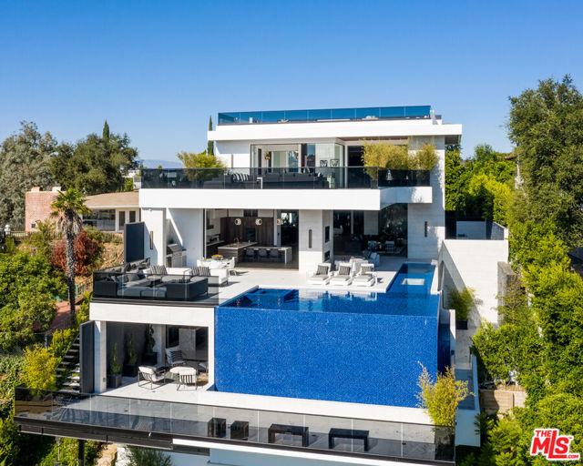 In one of Bel Air's most prestigious enclaves, this warm modern masterpiece by Ramtin Ray Nosrati captures sweeping vistas that span city lights, ocean horizons, and canyon ridgelines. A grand, light-filled floor plan unfolds with bespoke flooring, sculptural lighting, and expansive Fleetwood walls of glass that recede to create a seamless dialogue between indoors and out. The gourmet kitchen is a study in quiet refinement, wrapped in rich wood and marble, and appointed with top-tier appliances, dual ovens, wine refrigeration, and an oversized island with breakfast bar. Just beyond, a striking glass-bottom infinity pool spills gracefully into a lower-level waterfall, an intentional moment that anchors the home with serenity and visual intrigue. Five-star amenities include a sumptuous primary suite with private terrace, beautifully appointed guest accommodations, a dual-sided tropical fish aquarium, indoor waterfall, formal dining room, and multiple fireplaces that lend warmth throughout. Gated grounds and lush, layered landscaping frame a series of outdoor living spaces designed for both privacy and repose. Created with the consummate entertainer in mind, the lower level reveals a suite of extraordinary amenities, including a luminous onyx bar, a state-of-the-art theater with fiber-optic star ceiling, an immersive video wall, fitness studio, and a temperature-controlled wine cellar. A rare architectural work of art set within one of Bel Air's most coveted addresses.