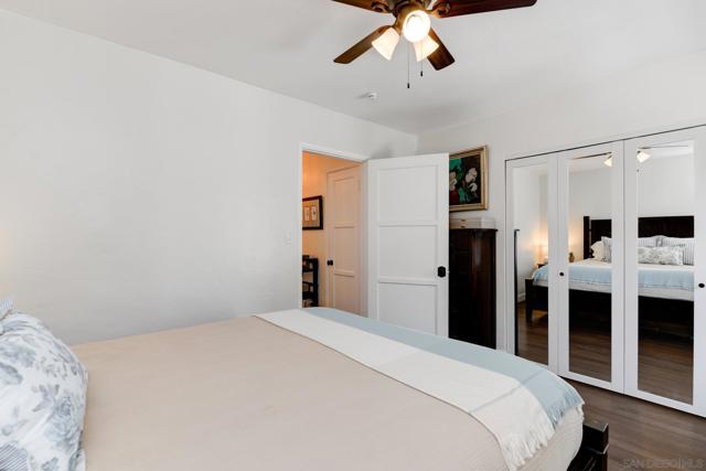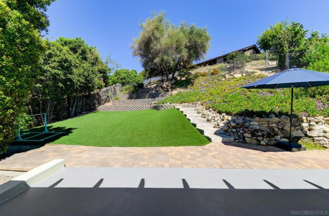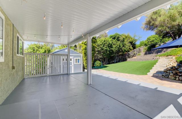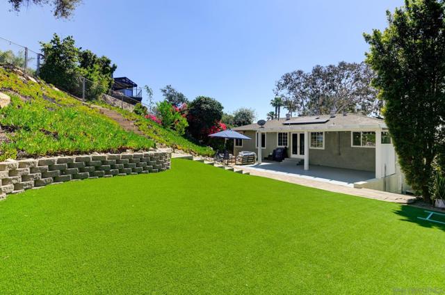 Quiet, private, and showcasing stunning sunset views, this light-filled 3-bedroom, 2-bath home is set on a secluded ¼-acre lot, elevated above street level for added privacy and sweeping vistas. With ample driveway parking and a tranquil porch this home is perfect for relaxing, enjoying the views, and listening to birds chirp among mature trees, flowering plants, and citrus. The interior is light and bright with an open, comfortable layout designed to maximize natural light and views and features newer luxury vinyl flooring throughout. The fully remodeled kitchen and living spaces feel airy and welcoming with windows positioned to bring the outdoors in and create a calming connection to the surrounding landscape. The back yard has newer turf, a Tuff shed, fire pit area, and a new patio cover. The home offers three well-sized bedrooms and two bathrooms, providing both comfort and functionality. A separate downstairs entrance adds flexibility for guests, a home office, or extended living arrangements. Spacious front and backyard areas with mature trees provide room to entertain, garden, or relax in a private outdoor retreat. No HOA and no Mello-Roos. Located just blocks from La Mesa Village, enjoy easy access to shops, restaurants, and community events—combining peaceful living with vibrant neighborhood charm.