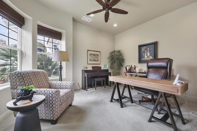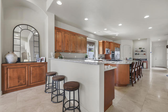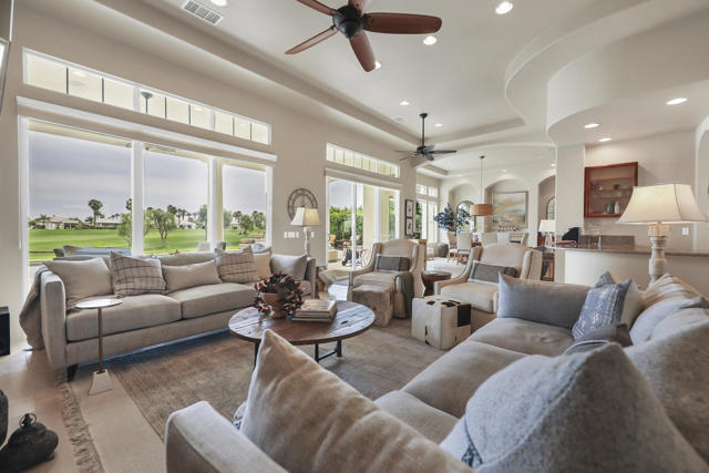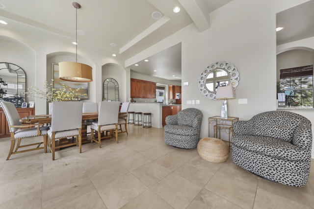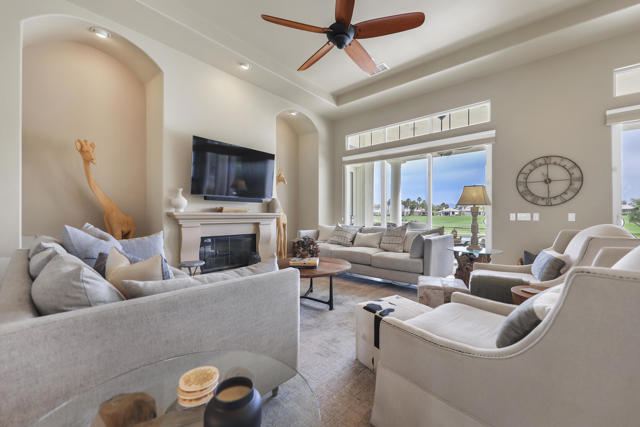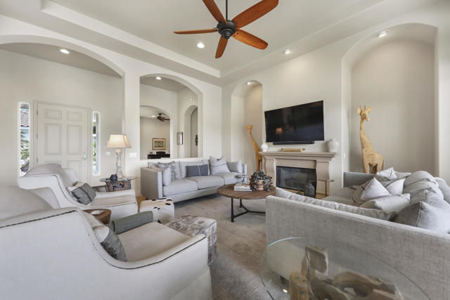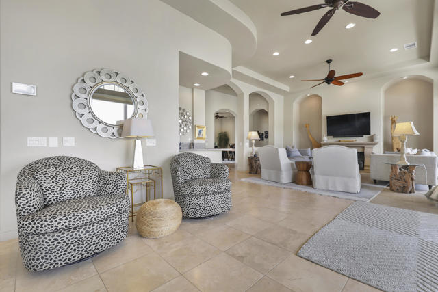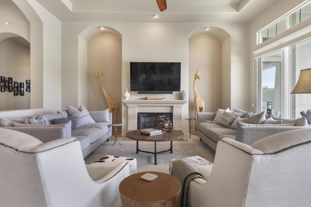Luxury Golf Course Living, Immediate Golf membership available with this property, No Wait list! The lay out of the Santa Rosa floor plan is designed for both grand entertaining and comfortable daily living. Located on a quiet double cul-de-sac in prestigious Mountain View Country Club, on an elevated lot that provides both privacy from the golf cart path and breathtaking views of the double fairways of the 13th. & 14th. holes and a serene lake & mountain view as a back drop. Optimal exposure to capture the early morning sunrise and plenty of afternoon sun. Each bedroom features a private ensuite bath. A versatile bonus room adjoins the spacious guest suites perfect for family & friends. French doors lead out into the courtyard which allows this guest wing it's own access to the courtyard. The gourmet kitchen features a large center island, stainless appliances, loads of cupboard and counter space and an informal eating area . The flexible living areas include / great room, formal dining room, and an office / den. The entertainment hub of the living areas integrate a wet bar with ample counter space, perfect for hosting guests. The luxury primary suite with cozy fireplace is the perfect relaxing retreat. The oversized bath has dual vanities, dressing area and spacious closet. The expansive out door living space accommodates multiple seating areas, dining and lounging overlooking the welcoming pool and spa. Kick back relax and enjoy this sophisticated blend of privacy and fabulous views! The nebulous of the community is the 18-hole Arnold Palmer Signature Golf Course, which was established in 2004, Practice Area include driving range, as well as chipping & putting green. Membership cap is to ensure tee time availability and a private experience. Wellness and Fitness Center features cardio and strength with personal trainers available.and a myriad of group classes. Court sports include lighted tennis courts and pickleball courts, & bocce ball. Community pool & spa area for lounging. Full Spa services available by appt. The clubhouse serves as the social hub for the community offering fine dining, & casual fare. Cafe Tesoro offers onsite Starbucks to greet the morning in the fresh air with shade tree seating. Social membership required, paid by buyer $10,000.