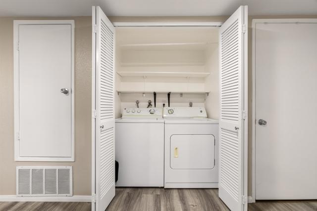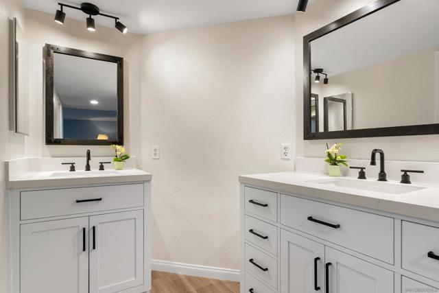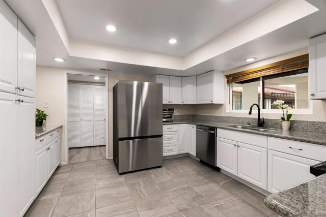 Rarely available in San Carlos, this largest-model, most desirable 3-bedroom, 2-bath corner unit in a gated community offers light-filled interiors and thoughtful upgrades throughout. The single-level ground floor home features all-new dual-pane windows, patio doors, and plantation shutters, complemented by a sleek kitchen with smart Samsung appliances and stylish LVP flooring throughout. The primary suite includes dual walk-in closets and a beautifully updated bathroom with modern vanities and a custom shower. This residence also offers a full-size in-unit washer and dryer, fireplace, central A/C, a large covered private patio with an oversized storage closet, and a generous separate garage storage unit. The home includes one garage parking spot and a second reserved space. Enjoy easy access to Cowles Mountain, Mission Trails, and Lake Murray, providing hiking, biking, and scenic outdoor recreation right in your backyard. Steps from grocery stores, coffee shops, dining, and other conveniences, with top-rated schools nearby, this exceptional condo delivers a perfect balance of comfort, location, and lifestyle.
