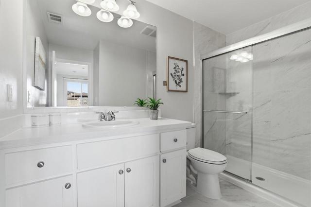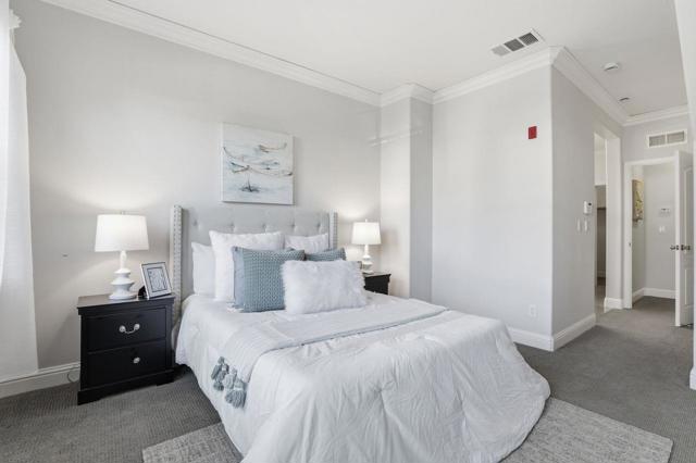 Better-than-new former model in Sunnyvales sought-after Fusion community, ideally in the heart of Silicon Valley. Bright/stylish 3BD/3.5BA home features open-concept living and gourmet main-level kitchen w/ SS appls, built-in oven, and gas cooktop. Desirable layout offers 3 privately separated BRs, each w/ en-suite BA, ideal for privacy, guests, multi-gen living, or rental potential. Elegant finishes incl recessed lights, crown molding, baseboards, interior sprinkler system, mirrored closet doors, E-lock, Nest thermostat, and attached side-by-side 2-car garage w/ new garage door. Private front patio overlooks park, green space, and basketball ct. Dual-pane windows bring abundant natural light and pleasant views. Convenient upstairs laundry. Luxurious primary suite features walk-in closet and oversized designer-tiled shower. 3rd suite includes fully remodeled BA and new carpet. Resort-style amenities incl clubhouse, lounge, kitchen, fitness ctr, putting green, and gathering spaces; HOA covers water/garbage. Ample guest parking. Close to parks, major tech campuses, dining, intl grocery stores, Downtown Sunnyvale, Caltrain, Hwy 101, and top schools incl Fremont High. Move-in ready w/ model-home appeal, premium finishes, value, and unbeatable Silicon Valley convenience.