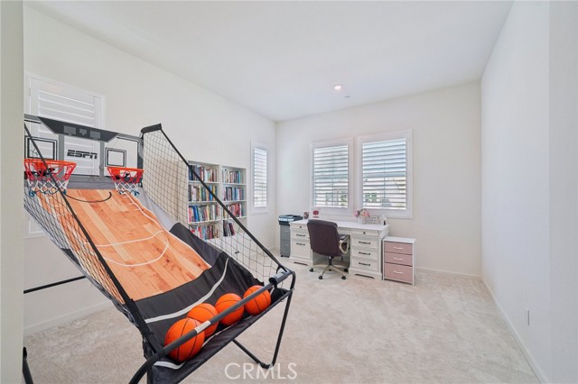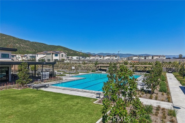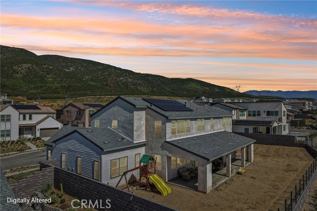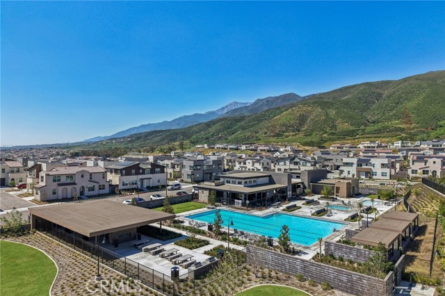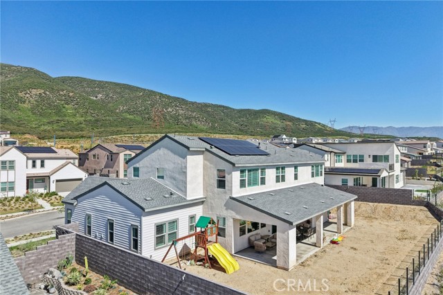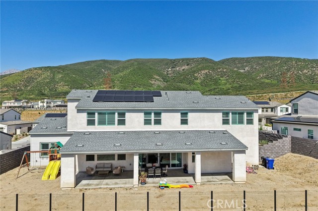 Welcome to this stunning, turnkey residence in the highly sought-after gated community of Narra Hills, where resort-style living meets modern comfort. Residents enjoy exceptional amenities including a gated entrance, pool, spa, lap pool, clubhouse, park, playgrounds, pickleball courts, and scenic mountain views. A charming front porch welcomes you into a bright interior featuring soaring vaulted ceilings and elegant wood shutters throughout. Just off the foyer, a hallway leads to a private junior suite with bathroom and a dedicated office or den—ideal for guests or working from home. The heart of the home showcases a spacious open-concept living room, dining area, and kitchen designed for both everyday living and entertaining. The kitchen is beautifully outfitted with abundant white cabinetry, striking blue marble countertops with dramatic veining, a walk-in pantry, and a convenient office nook with built-in desk. A mudroom adds functionality, while a sliding glass door opens to a large covered patio and a backyard ready for your personal vision. Upstairs, a generous loft provides versatile living space, along with three additional bedrooms, two bathrooms, and a laundry room. The expansive primary suite features a walk-in closet and a luxurious en-suite bathroom with dual sinks, a soaking tub, and a separate shower. Additional highlights include owned solar, offering energy efficiency and long-term savings and an oversized 3 car garage for parking and storage needs. This home offers the perfect blend of space, style, and resort-inspired community living.