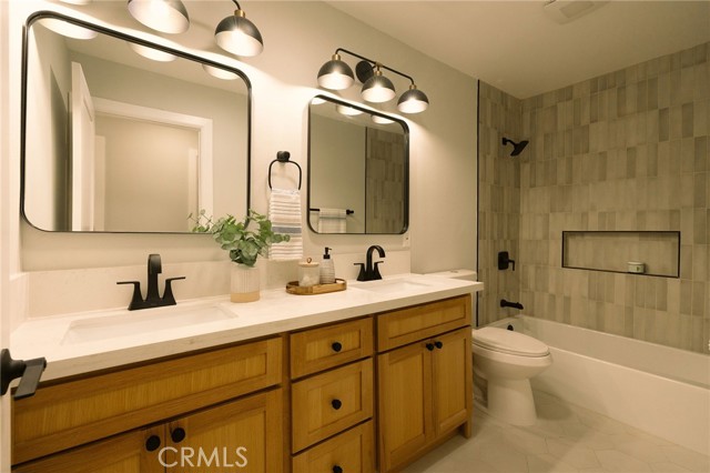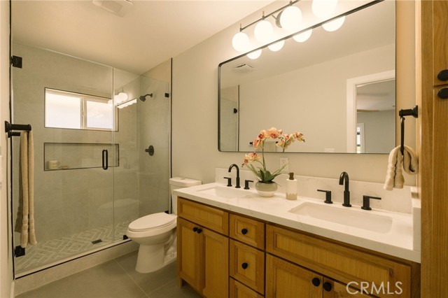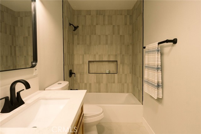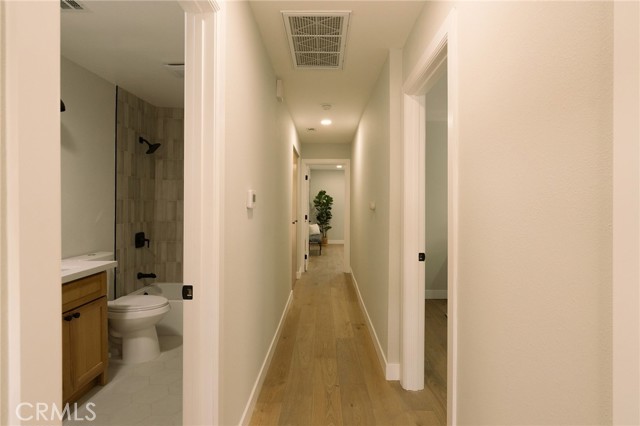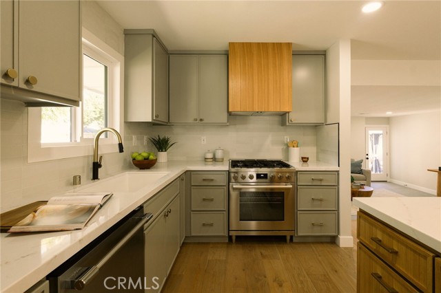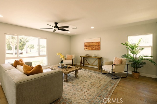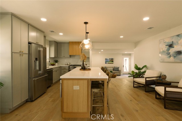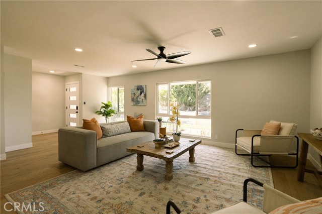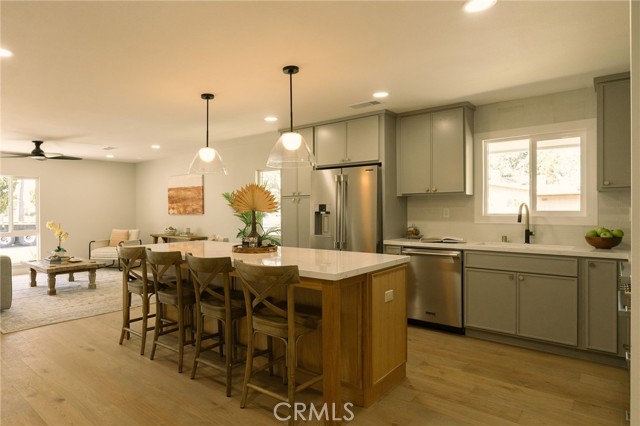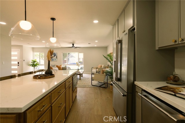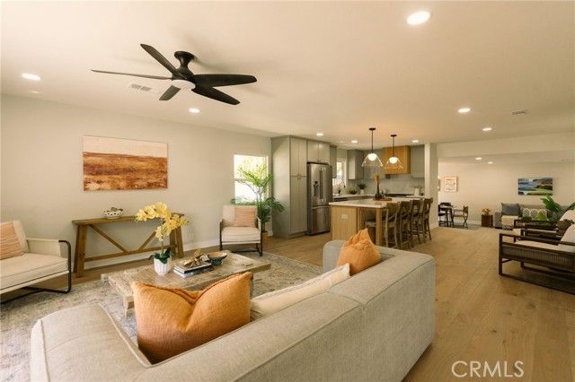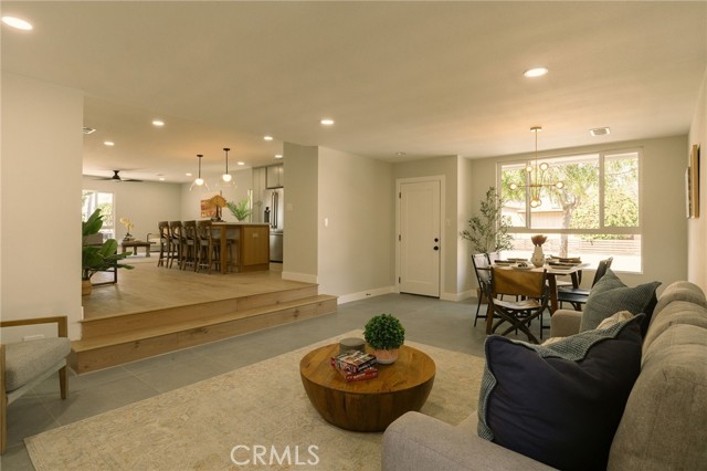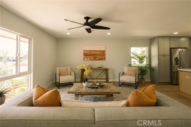 Welcome to this beautifully renovated 3 bedroom, 2-bathroom home located in prime Los Altos neighborhood. This corner home has an inviting curb appeal featuring drought tolerant landscape. Featuring a bright open floorplan the front living area flows through to the kitchen and then to another spacious living/dining area. The kitchen has been updated with new two-tone cabinets, sleek quartz counter tops, tile backsplash, stylish fixtures, stainless-steel appliances and has a large center island with plenty of countertop seating. The spacious primary bedroom has a large closet with custom built-ins, and ensuite bathroom and access to outdoor covered patio. Both the primary and hall bathroom feature new double sink vanities, stylish new fixtures, and custom tile work. Other features include freshly painted interior and exterior, new luxury engineered hardwood flooring throughout the living area, bedrooms and tile flooring in both bathroom and back living area, new energy efficient vinyl windows, new roof, plumbing and light fixtures, upgraded electrical panel, HVAC, new garage door and motor. spacious indoor laundry room and tankless water heater. This home is great for fun and entertainment with a great outdoor space. The private enclosed backyard has a large, covered patio and a manicured yard. There is a two-car garage with additional off-street driveway parking as well as small storage room attached to the garage. Tax rolls show different bedroom count.