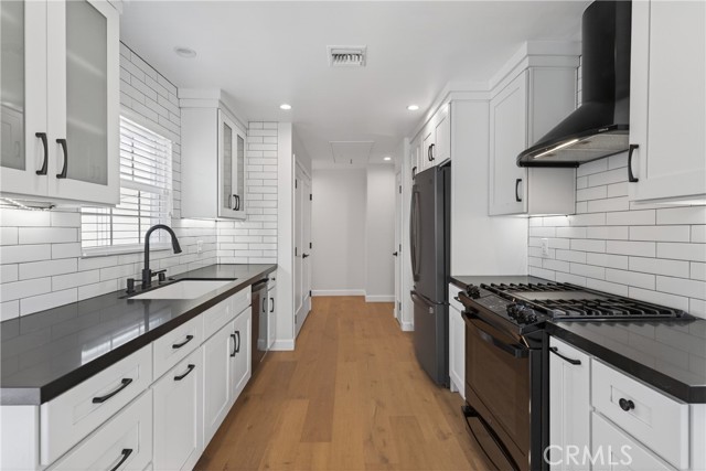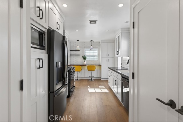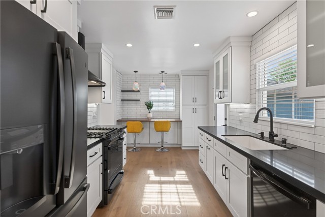 Fully remodeled turnkey gem powered by solar and Powerwall in North Hollywood. Welcome to 10415 Cumpston St — a meticulously upgraded 3-bedroom, 1.5-bath home in the heart of one of the San Fernando Valley's most sought-after neighborhoods. With over a decade of thoughtful, high-quality improvements, this 1,206 sq ft home lives large and checks every box. The 2021 whole-home remodel transformed this property from top to bottom. The stunning kitchen features a full gut renovation with a breakfast bar, all-new appliances, and designer finishes. The main bathroom was reimagined with a tiled walk-in glass shower, standalone soaking tub, large vanity, and bidet outlet. A stylish powder room was added for guests, while a dramatic tiled feature wall with fireplace insert anchors the living space. Engineered hardwood floors flow throughout, complemented by LED lighting, ceiling fans, a dining chandelier, and California blinds on every window. The primary bedroom addition includes a spacious walk-in closet with custom inserts, and in-home laundry adds everyday convenience. A Murphy bed in one of the secondary bedrooms offers flexible living — perfect for a home office that doubles as a guest room. Energy efficiency is unmatched — the home features a full solar panel system with Tesla Powerwall battery backup, EV charger-ready, a tankless water heater, dual-pane windows, and a newer HVAC system with fully replaced ductwork. The upgraded main electrical panel and LADWP digital meter round out a truly future-ready infrastructure. The 2019 roof adds further peace of mind. Outside, enjoy a private, enclosed backyard with a beautiful Brazilian hardwood deck, freshly reseeded lawn, and a newly renovated sprinkler and drip irrigation system. The detached 2-car garage sits behind a secure, remote-controlled automatic gate — a rare and coveted feature in this market. Exterior lighting at the front door, garage, deck, and side walkway creates wonderful ambiance day and night. Located in the vibrant NoHo Arts District, you're steps from the Lankershim Arts Center, El Portal Theatre, the Chandler Bikeway, Valley Village Park, and the North Hollywood Red Line Metro Station — with Universal Studios Hollywood and Warner Bros. Studio Tour just minutes away. A home that is this move-in ready, this energy-efficient, and this thoughtfully upgraded don't come along often! Come see this and make your move before someone else does!