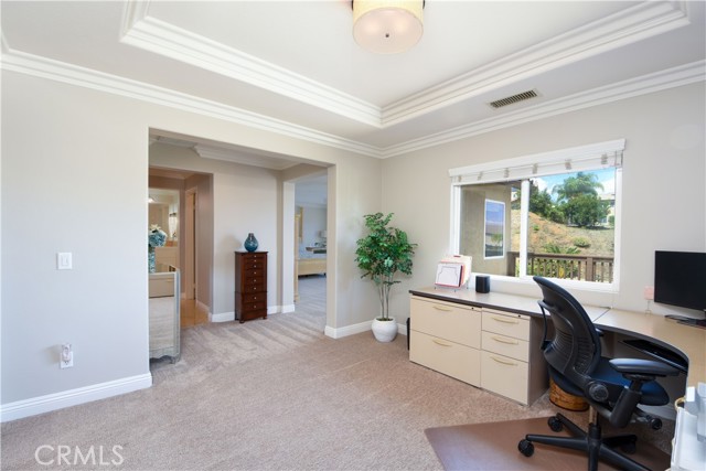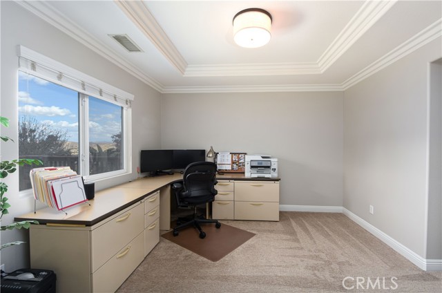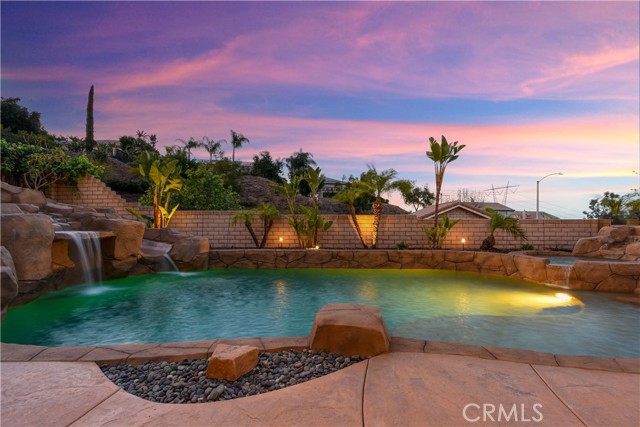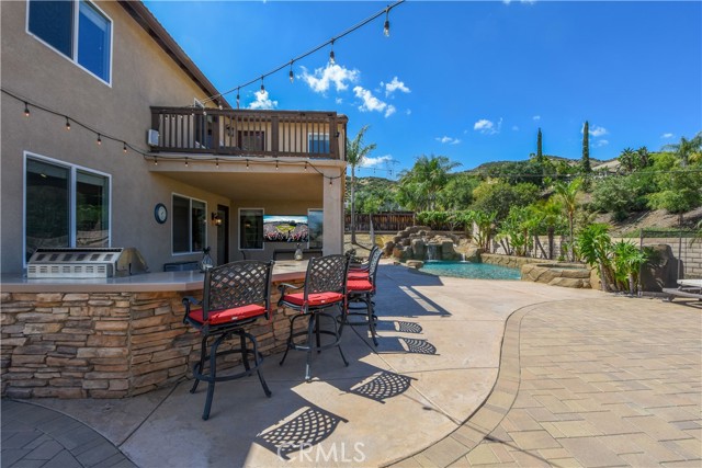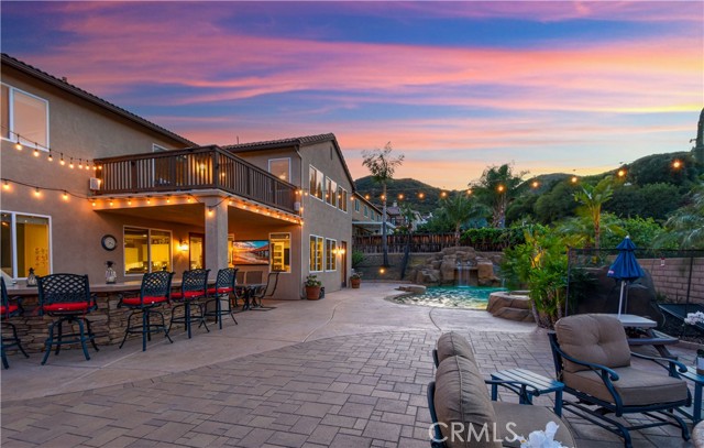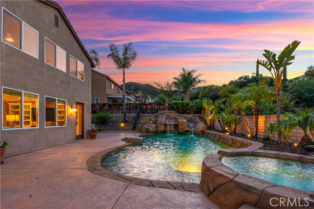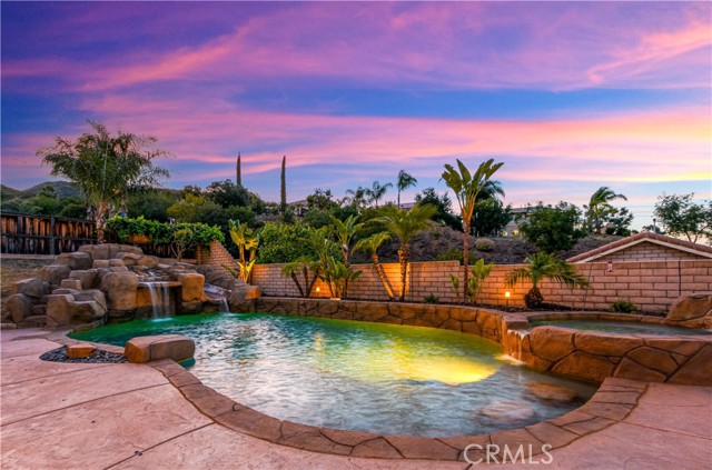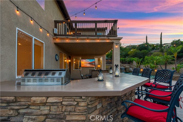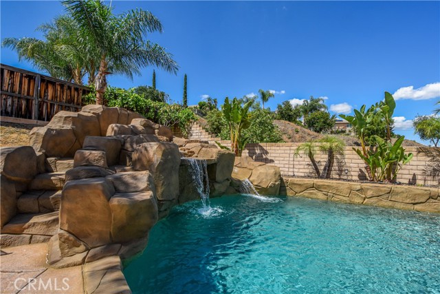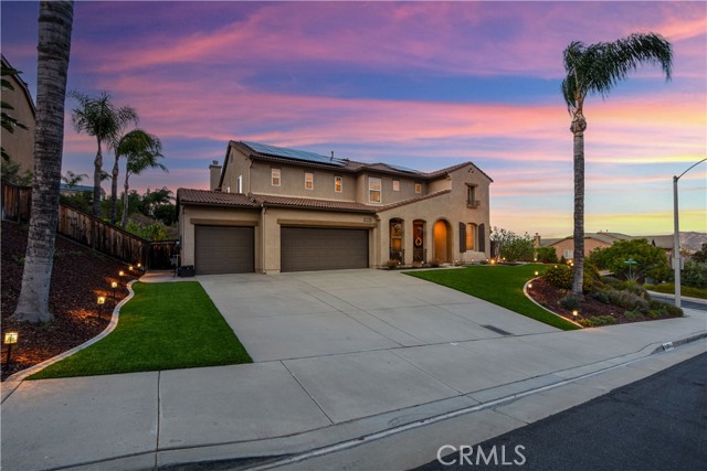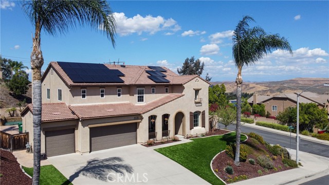 Set on a private corner lot within the prestigious Montecito Ranch community, this beautifully upgraded residence captures the essence of Southern California living with space, style, and sweeping mountain views. Spanning 3,629 sq ft, the home features 4 bedrooms, 4 bathrooms, and a versatile loft, with only one neighboring property enhancing its sense of privacy. Designed for both comfort and entertaining, the interior showcases wood-look tile flooring, crown molding, a chef’s kitchen with soft-close cabinetry, pull-out shelving, and reverse osmosis water filtration, along with extensive smart home features throughout. The backyard is a true retreat with a resort-style rock pool and spa with slide, built-in BBQ/bar, fire pit, outdoor speakers, and multiple spaces to relax and entertain. Enjoy beautiful mountain views from the private balcony off the primary suite, creating the perfect place to unwind. Additional highlights include a 4-car garage, solar with backup battery, newer AC, whole house fan, artificial turf, and included appliances. Ideally located near the I-15 corridor with planned express lane expansions, and just minutes from Glen Ivy Hot Springs and The Shops at Dos Lagos, offering a perfect balance of relaxation, dining, shopping, and convenient access throughout the region. A rare opportunity combining privacy, upgrades, and lifestyle in one of Corona’s most desirable communities.