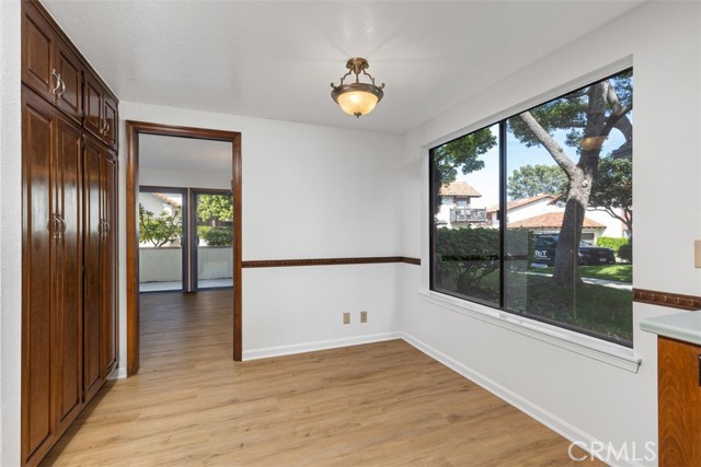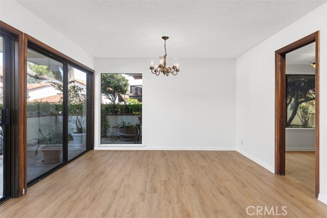 Welcome to Bixby Riviera, one of Long Beach’s premier 24-hour guard-gated condominium communities! This immaculate single-level END CORNER unit offers 2 bedrooms, 2 bathrooms, and approximately 1,454 square feet of beautiful living space. Ideally situated on the ground level in a desirable interior location, this home enjoys peaceful surroundings with tranquil views of lush gardens and mature trees. Step inside to a freshly painted interior featuring luxury vinyl flooring throughout the living area, dining room, kitchen, and hallway, complimented by new carpet in both bedrooms.The inviting living room showcases a cozy gas fireplace, wet bar, and large north-facing sliders that fill the space with an abundance of natural light. The well-maintained kitchen is equipped with newer stainless steel appliances and a charming breakfast area with a large east-facing window, perfect for enjoying your morning coffee. The spacious primary suite offers both comfort and functionality, featuring a large ensuite bathroom with dual sinks, a separate shower, and soaking tub. Additional highlights include wood shutters and crown molding in both bedrooms, a convenient in-unit laundry room, and a hall bathroom with a walk-in jetted tub/shower combination. Enjoy seamless indoor-outdoor living with a private north-facing patio off the living room, along with direct access to adjacent parking through a private gate, ideal for guests and everyday convenience. This unit also includes two oversized subterranean parking spaces with bonus storage and direct elevator access to the first level. Located north of 7th Street, adjacent to CSULB and across from University Park Estates, Bixby Riviera offers exceptional convenience with close proximity to beaches, parks, freeway access, and the shopping and dining of Naples and Belmont Shore. Resort-style community amenities include a sparkling pool and spa, tennis/pickleball court, saunas, fitness center, clubhouse, and a beautiful entry fountain—all within a secure, 24-hour guard-gated setting.