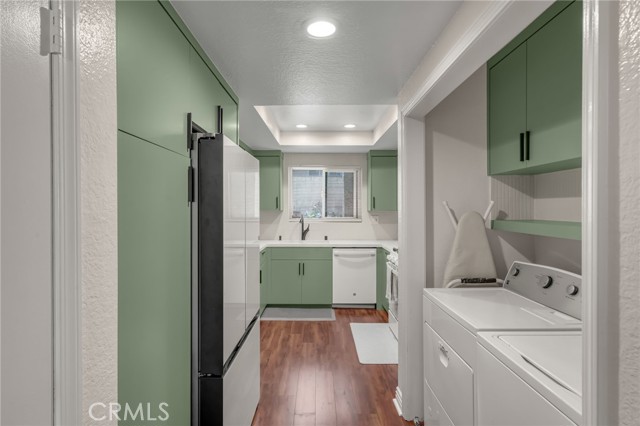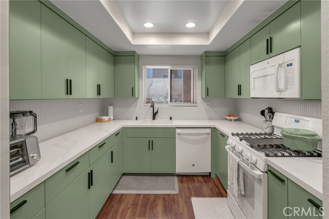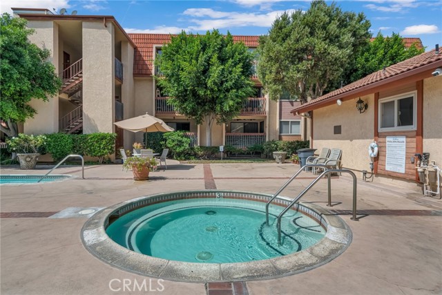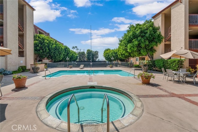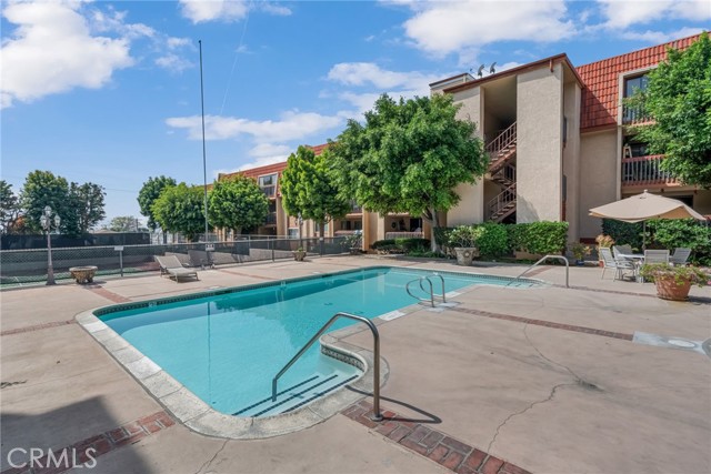 Resort-style living in the highly sought-after community of Signal Hill! This beautifully renovated 2-bedroom, 2-bath end-unit condo is perfectly situated among lush, serene surroundings with views of the sparkling pool. The spacious, open-concept floor plan offers an expansive living and dining greatroom that seamlessly flows to a private balcony—perfect for relaxing or entertaining. The oversized Primary Suite is a true retreat, complete with mirrored closet doors, a large walk-in closet, and sliding glass doors that open to the balcony. A generously sized Second Bedroom adds flexible living space. Step into a stunning, modern kitchen featuring custom solid wood cabinetry with pull-out drawers, sleek quartz countertops, designer hardware, and a stylish tile backsplash. Both bathrooms have been thoughtfully upgraded with new vanities, toilets, tiled shower enclosures, updated flooring, hardware, and mirrors. Additional highlights include new dual-pane windows and sliding doors, luxury wood laminate flooring, central A/C, a new front door, in-unit full-size laundry and two assigned parking spaces. Residents enjoy amenities including a clubhouse, pool, spa, bbq area and tennis court. All of this, ideally located, near shopping, dining, parks, golf courses, freeways, and public transportation—this home offers the perfect blend of comfort, style, and convenience.