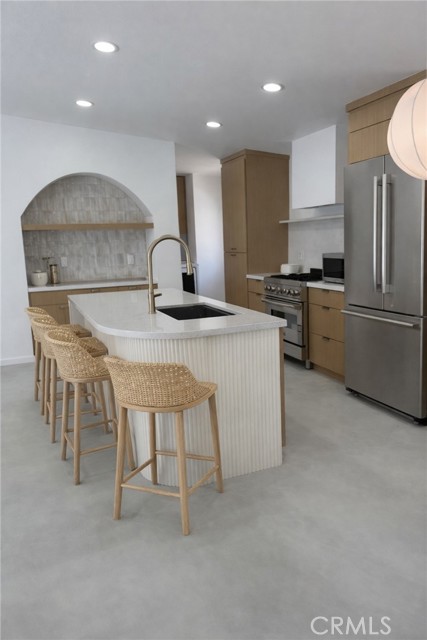 Beautifully redesigned and thoughtfully upgraded, this Newport Beach home embodies effortless coastal living. Inside, crisp white walls, micro-concrete floors, and custom warm wood cabinetry create a clean, inviting atmosphere filled with natural light from the skylight above. The open-concept layout flows seamlessly through the living and dining spaces, complemented by a top-tier Thermador refrigerator and dishwasher, along with a Z-Line range and oven. Dutch doors open to welcome the refreshing ocean breeze—perfect for both relaxed gatherings and formal entertaining. With two spacious secondary bedrooms, you’ll have flexibility to host guests or create a dedicated home office. One of the bedrooms is currently a "walk-in" closet. Outdoors, enjoy complete fencing surrounding the property. Low-maintenance turf and modern concrete stepping stones help keep the landscape healthy year-round. Community amenities include two private pools, a spa, a meeting room, and exclusive access to a private beach.