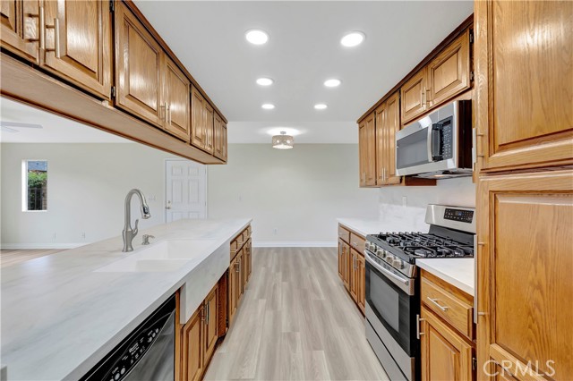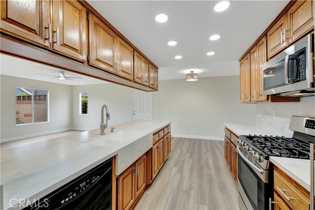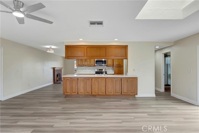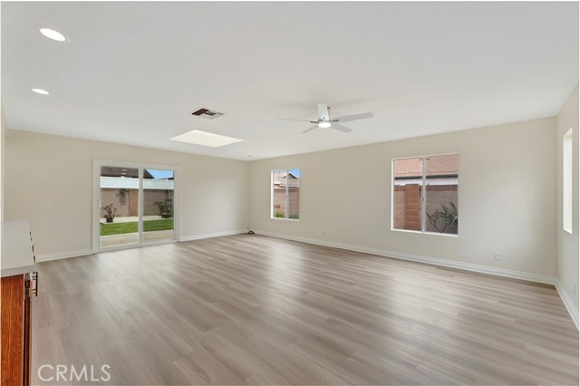 Expanded 3 bedroom 1 3/4-bathroom single level home. This home has an added family room, which will accommodate large, oversized furniture and is ideal for family gatherings. The wall of windows in the family space brings the natural light and yard into your home. The home is ideal for the first time home buyer or the family who desires a new start. This home has been refreshed with new paint throughout, new vinyl plank flooring, recessed lights in the kitchen area and features a large galley style kitchen with an abundance of cabinetry. New carpet is found is the bedrooms along with ceiling fans, for fresh air. The living area features a fireplace for the cold winter months. Parking is easy with an expansive driveway.