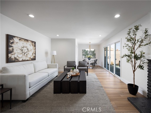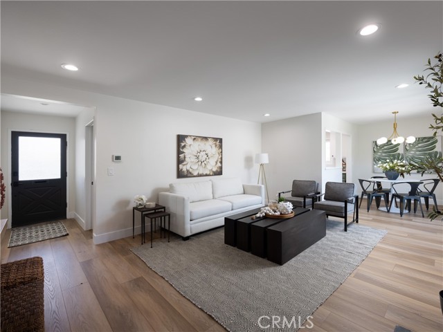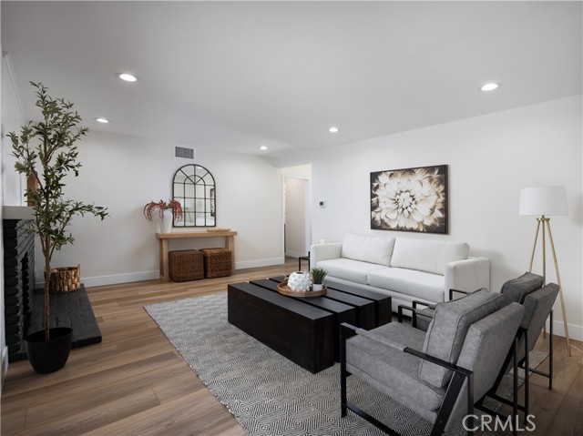 Welcome to 12592 Palomar West, Garden Grove — a beautifully reimagined 4-bedroom, 2-bathroom single family detached residence where refined design, modern comfort, and effortless California living come together in one exceptional offering. Fully remodeled with a sophisticated eye for detail, this turnkey home showcases an elevated aesthetic throughout, blending warm natural textures with clean contemporary finishes. Step inside to discover living spaces filled with natural light, enhanced by wide-plank luxury vinyl plank flooring throughout, recessed lighting, newly updated fixtures, and a striking black brick fireplace that aceents the main living area with dramatic style. The easy-flowing floor plan creates a seamless connection between the living room, dining area, and kitchen, connected to the outdoors offering an ideal setting for both everyday living and stylish entertaining. The designer kitchen is a standout, thoughtfully appointed with new quartz countertops and backsplash, cabinetry refreshed in a rich designer hue, new sleek hardware, and new stainless steel appliances, including an oven with air fry feature and a touch on and off faucet in matte black finish. A dedicated dining area framed by sliding glass doors to the large backyard invites effortless indoor-outdoor living, while the layout offers both beauty and functionality. This home also features a dedicated interior laundry area with built-in shelving and additional storage, enhancing its polished design. Retreat to the spacious bedrooms, each thoughtfully refreshed with a bright, airy feel and versatile layout options for guests, family, or work-from-home needs. The bathrooms have been tastefully remodeled with clean-lined finishes, updated vanities, modern fixtures, and a fresh, timeless palette that complements the home’s elevated design. Outside, the property continues to impress with a large private backyard offering an expansive lawn, patio space, and mature landscaping with blooming roses and established greenery. Whether hosting under the stars, enjoying a quiet morning coffee, or creating the ultimate outdoor retreat, this backyard offers the space and setting to do it all. From its crisp curb appeal and welcoming entry to its beautifully curated interiors and inviting outdoor spaces, 12592 Palomar West is a rare opportunity to own a truly move-in ready home with designer style in the heart of West Garden Grove.