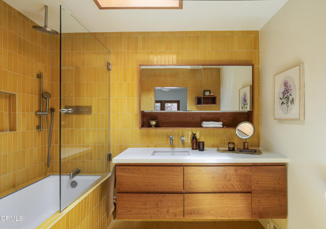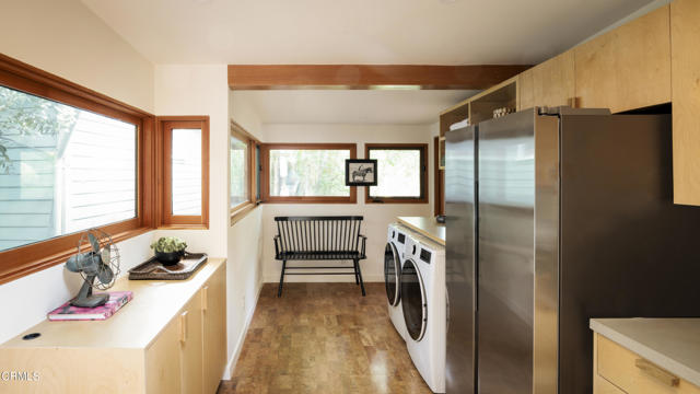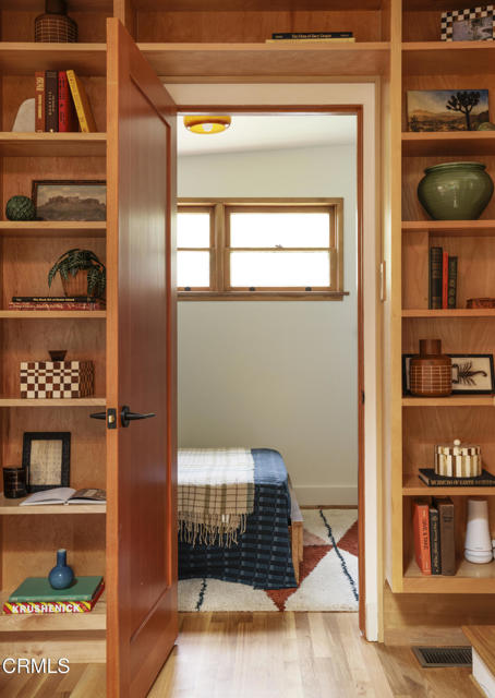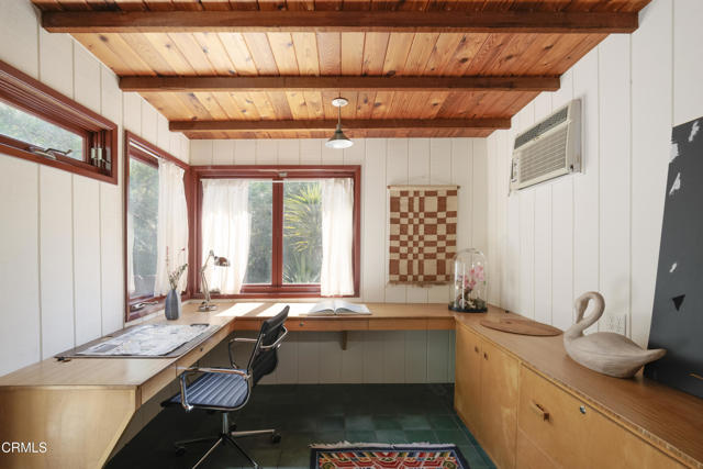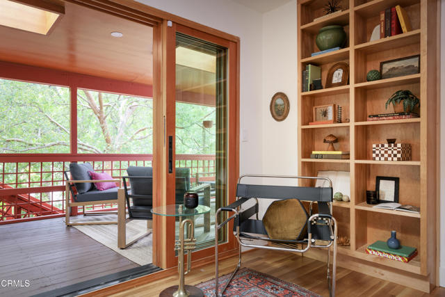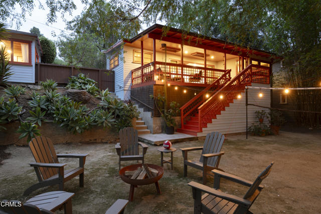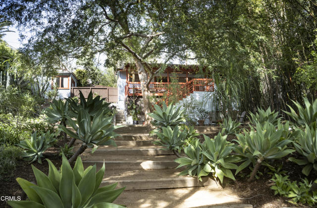 Built in 1921, this private and rustic former hunting lodge has been tastefully updated, blending old world charm and modern amenities. Nestled on a large street to street gated lot in a prime Mount Washington location, this lushly landscaped bungalow oasis has many upgrades including natural wood built-ins, skylights, refinished wood floors and ceilings, a newly remodeled bathroom, as well as a large utility / bonus room off the kitchen with custom natural wood cabinetry and cork floors-perfect for a workout or hobby room. This 2 bed, 1 bath sanctuary is cited in a park-like setting amongst native landscaping and mature trees designed by Judy Kameon of LA landscape architecture studio Elysian Landscapes. Multiple decks, patios, and entertaining areas with flat pads and walkways surround the home, offering many opportunities for relaxing and entertaining. A private gated entry leads to the property's several patios and decks and to the detached studio/office-flex space, with its own separate entrance. The light-filled home includes a spacious living room that opens to the large-covered deck. The open kitchen opens to the dining room and to the front patios. The property also features central AC and heat, a large walk-in primary closet with built-ins, a cold plunge, wine fridge, outdoor shower, ample enclosed storage below the house, and a relined sewer line. A private sanctuary, yet close to bustling Highland Park, Metro, DTLA and freeways.