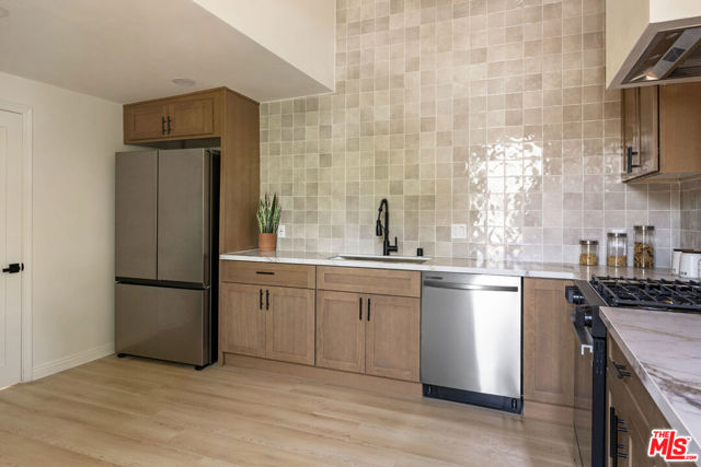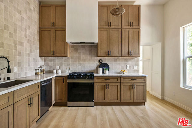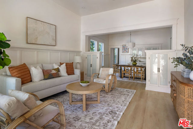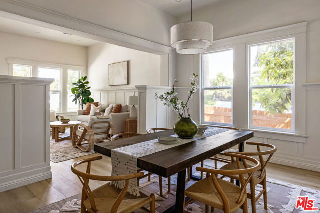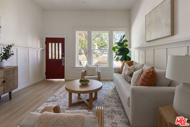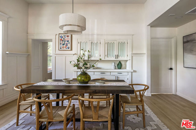 In the heart of Echo Park, this updated 1890 bungalow has been beautifully refined to balance original character and modern functionality. Beyond a fenced front yard, the spacious interior impresses with stunning ceiling height, abundant light, and original Arts and Crafts woodwork including gorgeous paneling. The spacious living room connects to a generous dining with a built-in banquette; newly-installed hard surface flooring runs throughout. The remodeled kitchen presents a full-height tile backsplash, generous storage, elegant under-cabinet lighting, and stainless appliances. Two bedrooms include an ensuite primary with walk-in closet; a large bonus space beneath the home provides ample room for projects and gear.The front yard is perfect for outdoor dining, and the porch is just right for morning coffee. Amenities include central AC, recessed lighting, and system upgrades. The best of Echo Park coffee and dining and the farmers market are minutes away, with easy freeway access.