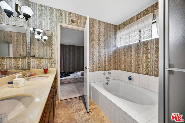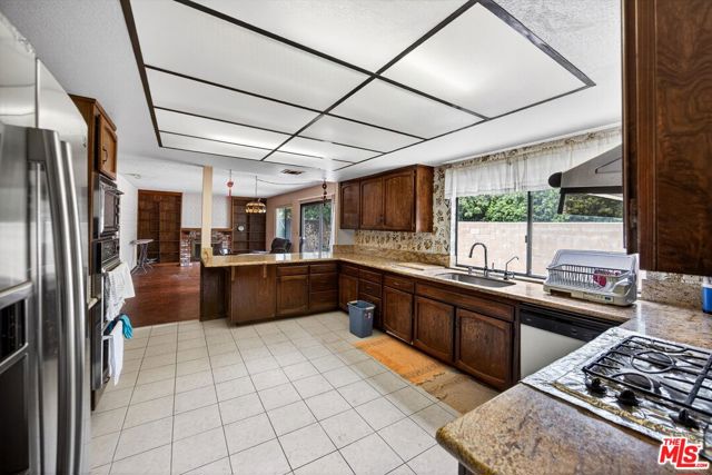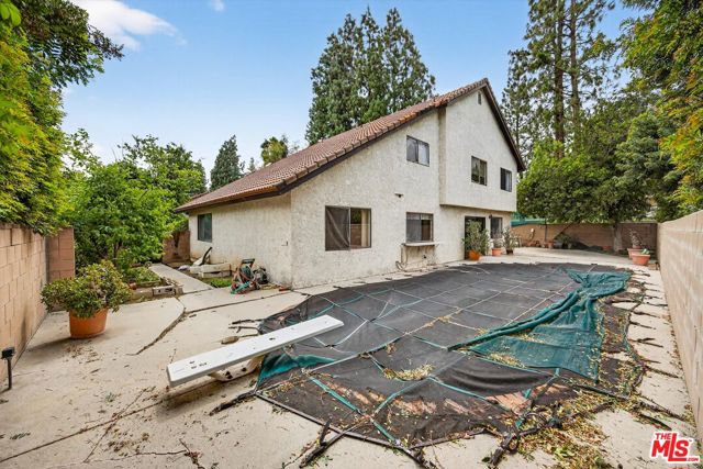 Opportunity knocks in desirable West Hills! This spacious home offers over 2,600 sq ft and is ready for your vision and renovation. Featuring soaring cathedral ceilings in the living and dining areas, an open kitchen that flows into a family room, and direct access to the backyard, the layout provides a fantastic foundation to reimagine.The main level includes a convenient bedroom and bathroom ideal for guests or multi-generational living. Upstairs, you'll find four additional bedrooms and two bathrooms, including a generously sized primary suite with private balcony access, dual sinks, and a separate tub and shower. There is also attic access from one of the bedroom closets, offering a substantial space that may lend itself to creative uses (buyer to verify).The backyard presents a blank canvas, including a pool that has not been in use for an extended period and is ready for restoration.Property is a fixer and requires repairs, property is being sold in as is present condition. Additional features include a three-car attached garage and ample driveway parking, all situated on a quiet cul-de-sac in West Hills. Bring your contractor and imagination this is your chance to transform a diamond in the rough into something truly special!
