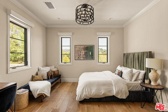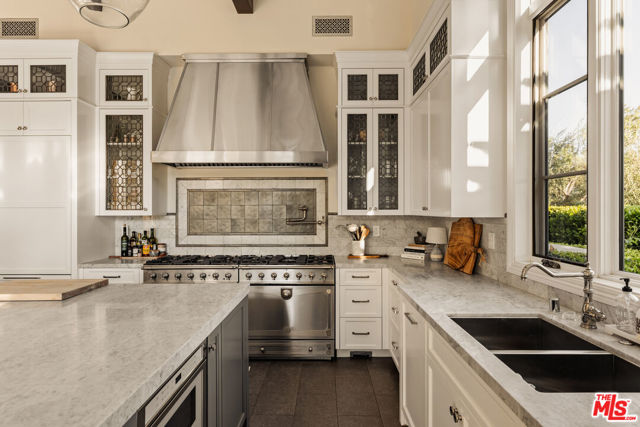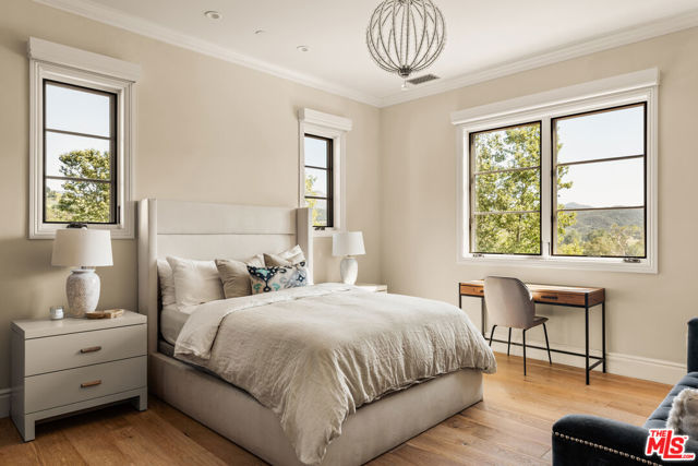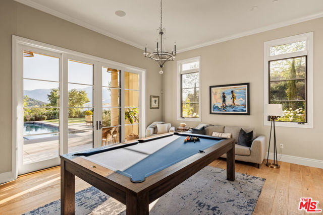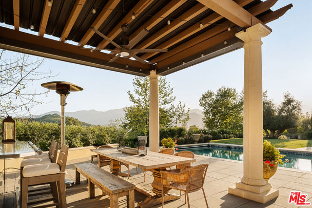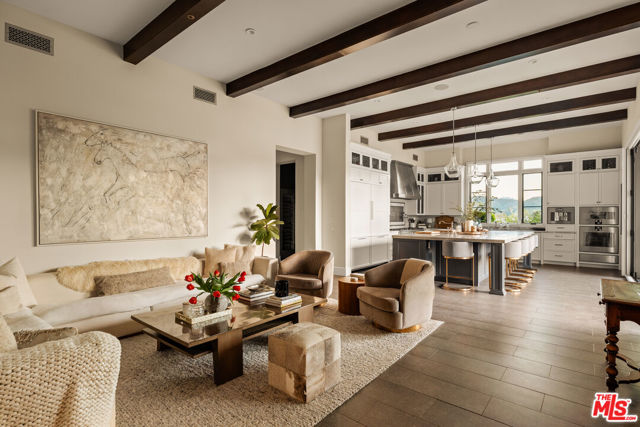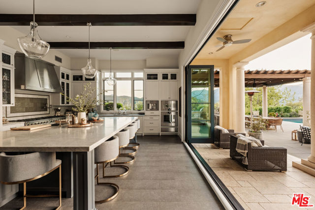 Set within the gates of Malibu Valley Estates, amidst the serenity and natural beauty of the Santa Monica Mountains, this newer-construction Italian-inspired estate offers breathtaking panoramic mountain and canyon views, exceptional privacy, and a level of craftsmanship rarely seen. Built by one of Southern California's most meticulous builders and tucked behind a second set of gates, the residence marries high-quality finishes, state-of-the-art technology, and modern innovation with timeless architecture and style. Spanning over 7,000 square feet on more than 2 acres, the estate features six beautifully appointed en-suite bedrooms and a grand, open floor plan designed for both everyday living and elevated entertaining. Soaring 12 to 20-foot ceilings, imported finishes, and walls of glass create a light-filled interior that seamlessly frames the surrounding natural landscape. A dramatic foyer with handcrafted wrought iron detailing introduces expansive entertaining spaces that flow effortlessly from one to the next. The chef's kitchen is outfitted with professional-grade La Cornue and Gaggenau appliances, marble countertops, and an oversized island with breakfast bardesigned for both casual dining and refined gatherings. A 20-foot retractable wall of glass opens to the loggia, revealing a resort-style outdoor setting complete with a pool and spa, manicured gardens and lawns, tranquil fountains, and mature landscaping, evoking the timeless elegance of a Mediterranean villa. "The Italianate" is a true expression of luxury living, offering a four-car garage and expansive motor court ideal for collectors, along with the latest in smart-home technology from Crestron and enough solar storage capability to power the home off-grid. Ideally positioned just minutes from both the Pacific Coast Highway and the US-101, the property offers a rare balance of tranquility, accessibility, and elevated living. Residents enjoy close proximity to high-end grocers including Erewhon and Bristol Farms, as well as some of the best dining, shopping, hiking, biking, horseback-riding trails, and lifestyle destinations Calabasas and Malibu have to offer.