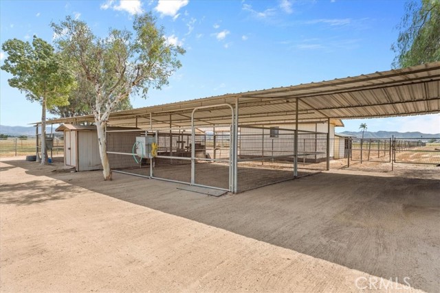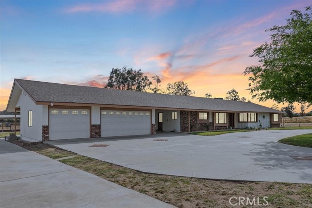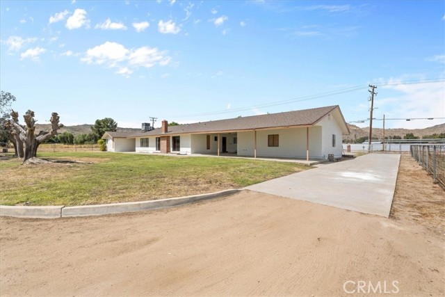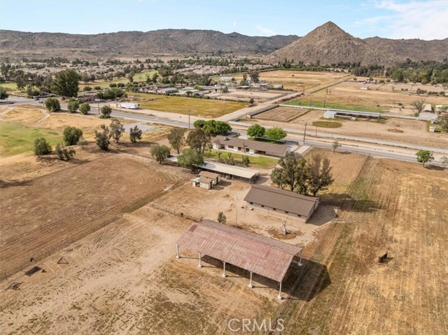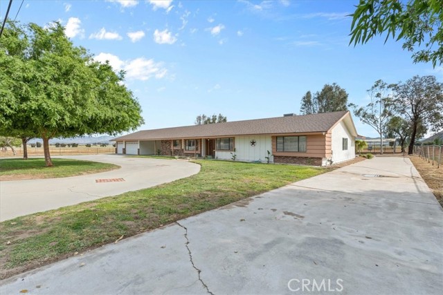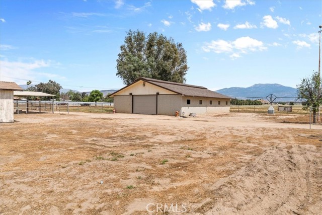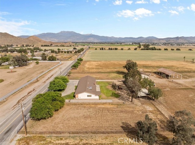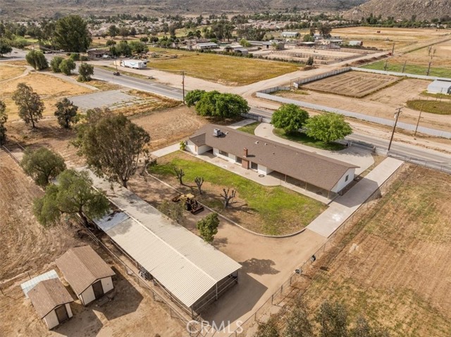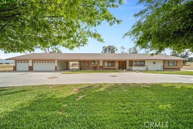 Pride of Ownership! Offered for the first time since it was built in 1980, this beautifully maintained, custom ranch-style home showcases true pride of ownership and timeless charm. Nestled on an expansive 9.55-acre lot in desirable West Hemet, this impressive property features 3 spacious bedrooms, 2.25 bathrooms, and approximately 2,525 square feet of living space. The thoughtfully designed floor plan offers both comfort and functionality, perfect for everyday living and entertaining. The home boasts a well-appointed kitchen with ceramic countertops, double ovens, a 5-burner cooktop, and a built-in microwave. Enjoy generous living areas including a huge living room and a separate family room with a cozy wood-burning fireplace, accented by beautiful wood-beamed ceilings and custom wood wall finishes. Two double glass doors provide seamless access to the backyard, enhancing indoor-outdoor living. Additional interior highlights include: Spacious indoor laundry room Large primary suite with dual sinks New carpeting throughout Fresh interior and exterior paint New central A/C system Abundant natural light and upgraded lighting fixtures Decorative textured ceilings Ample cabinetry and storage throughout The exterior is equally impressive, featuring: Detached 3-car garage Enclosed horse barn – ideal for equestrian use or additional storage Extensive covered RV parking with ample space for trailers and recreational vehicles Two additional storage structures The property is fully fenced and gated, offering privacy and security, with two double-gate entrances equipped with automatic openers, allowing for convenient circular driveway access. Disclaimer: All information provided is deemed reliable but not guaranteed. Buyers and their agents are advised to independently verify all information, including zoning, permits, and intended use.
