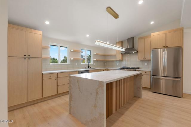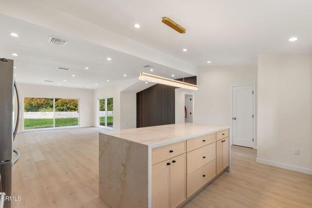 Completely reimagined and rebuilt from the ground up and tucked away on a quiet cul-de-sac above Rinaldi in one of the most desirable pockets of Granada Hills, this exceptional single-story residence offers the rare combination of modern construction, expansive land, and refined design. Set on an impressive 30,000+ square foot lot, this is not a remodel--it is a full-scale rebuild with a thoughtfully redesigned floor plan and every major system brand new.Spanning approximately 1,538 square feet, the home features 3 bedrooms and 3 beautifully appointed bathrooms, all finished with high-end materials and meticulous attention to detail. The open-concept great room is designed for both everyday living and effortless entertaining, highlighted by waterproof wood flooring, LED recessed lighting, and custom slat wood accent walls that add warmth and architectural character.At the heart of the home is a stunning chef's kitchen, complete with custom cabinetry, waterfall quartz countertops, and premium stainless steel appliances, seamlessly flowing into the main living space. Each bathroom has been fully upgraded with designer tile, modern fixtures, and a clean, sophisticated aesthetic.Beyond the interior, the property continues to impress with newly landscaped front and rear grounds, lush lawns, a brand-new irrigation system, and a spacious concrete patio ideal for outdoor gatherings. The finished garage features epoxy flooring, a new door, and an electric vehicle charger, while the extended driveway and newly paved street enhance both curb appeal and functionality.Every major component of the home has been replaced, including a new roof, new windows and doors, brand new electrical system with upgraded panel and wiring, copper plumbing, ABS sewer lines throughout the house all the way to the street, and a new 4-ton HVAC system--offering true peace of mind for years to come.This is a rare opportunity to own a turnkey, newly rebuilt home on an oversized lot in a premier Granada Hills location--where modern luxury meets everyday comfort.