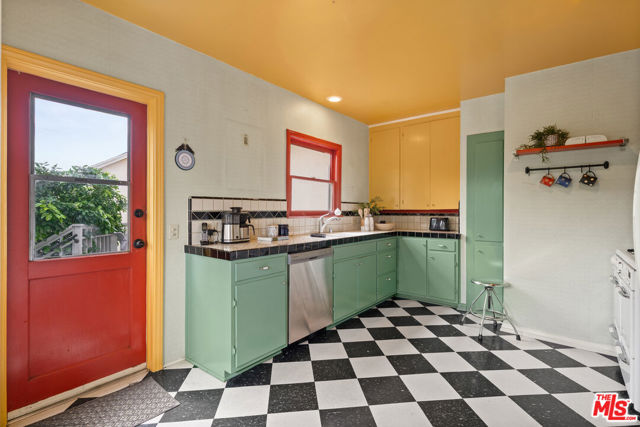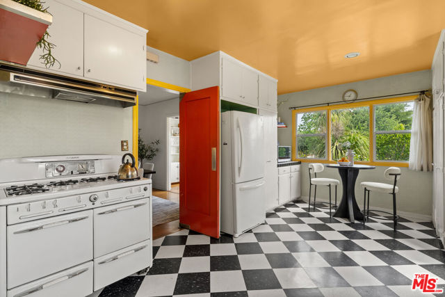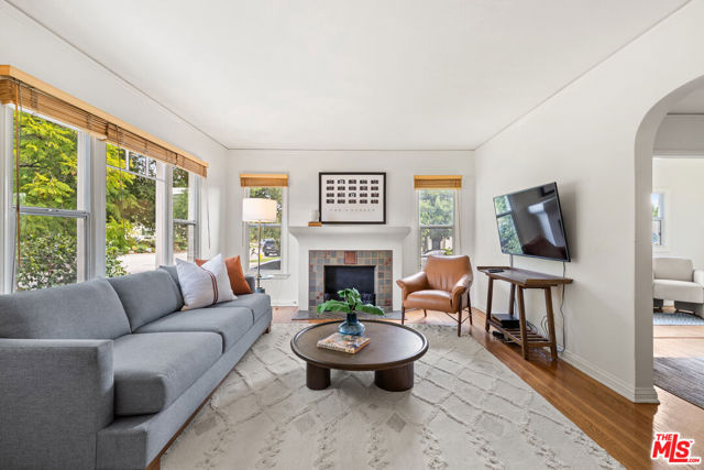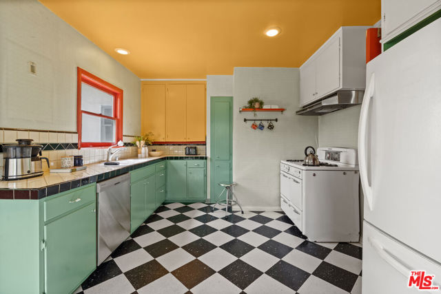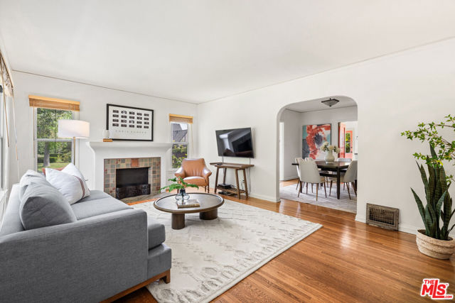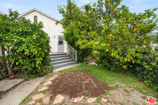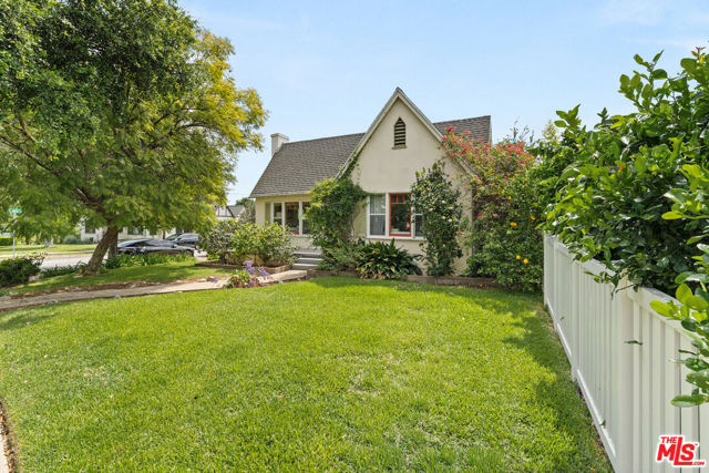 Romantic NE Pasadena home waiting to steal your heart. Sitting on a generous corner lot, the home welcomes you with its charming 1930's English Country style, like the steep-pitched roof, period gable vents and a sweet front porch. Inside you'll find a beautiful living room with decorative fireplace, original hardwood floors, and green views outside every window. The formal dining room has plenty of space for sharing meals with friends and family, and opens to a sun room which can serve as a bar, office or play-space. The kitchen is the real showstopper, with its black and white checkerboard floor, sea-foam green cabinets and vintage O'Keefe & Merritt stove. Filled with natural light and gorgeous views of the lush garden outside, this joyful antidote to the drab colorless kitchens makes cooking a delight. Step through the back door to a sunny deck with space for lounging and entertaining, and enjoy oranges and grapefruit from your highly productive trees. The home features 4 good sized bedrooms and 2 bathrooms, providing plenty of room for privacy and guests. The detached garage can potentially be converted to an ADU for additional living space or rental income. With proximity to Victory Park, shops and easy fwy access, you'll find living here exceptionally attractive and convenient.